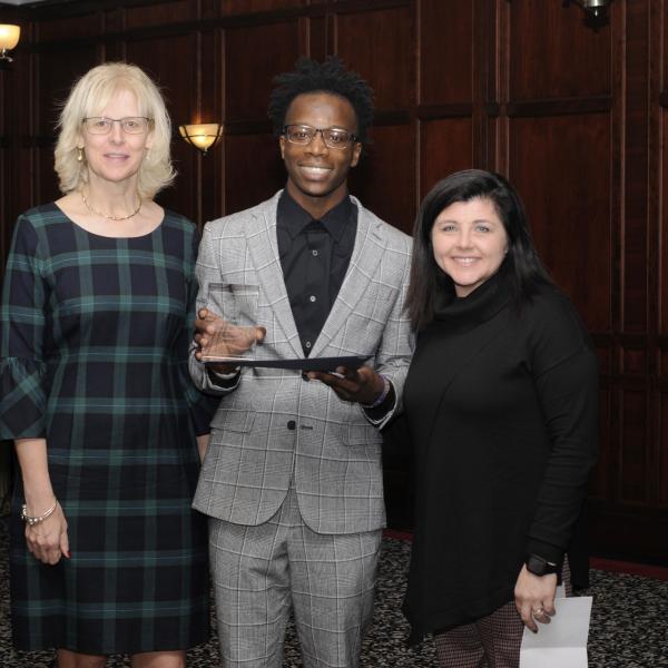 The President's Award, which reflects its recipient's leadership and service to the college, was given to Samir Khalid Pringle, of Philadelphia, who was introduced by Ashley M. Hunter, coordinator of residence life operations. Pringle earned an associate degree in business management and will begin work in the spring toward a bachelor's in business administration. (Pringle was also recognized as the day's student commencement speaker.)