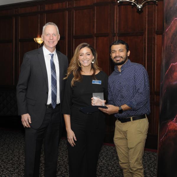 Jay Kanaiyalal Patel received the Board of Directors' Award for achievement under exceptional conditions. A resident of Canton, Michigan, Patel earned a bachelor's in manufacturing engineering technology and was accompanied by Heidi E. Roupp, disability and access resources specialist.