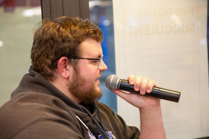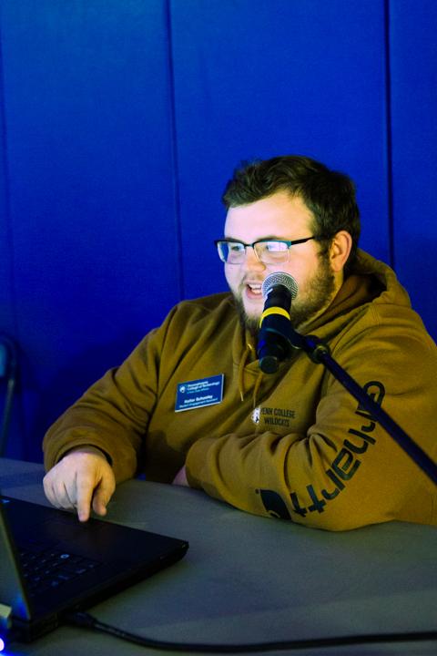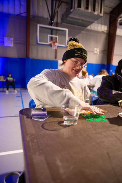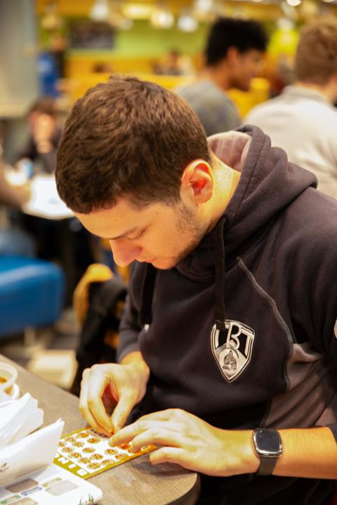 The bingo king! Kellor A. Schooley, business administration, calls the numbers. An engagement assistant for the Office of Student Engagement, Schooley shared, "I genuinely love to host bingo. I love hanging out with everyone and truly just having a good time. And, hey, free stuff!"
