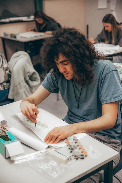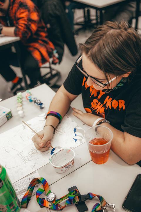 Sip & Paint is held in an arts classroom on the second floor of the Campus Center.