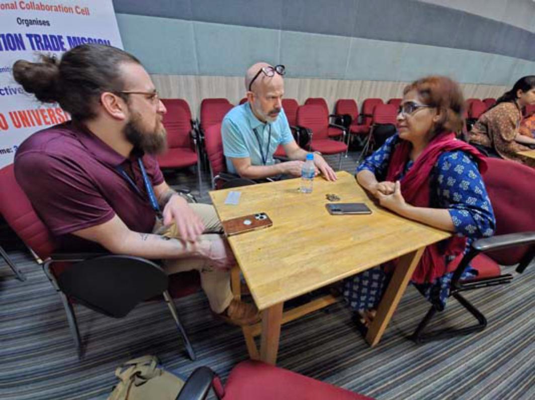 Representing Penn College on the mission are Anthony J. Pace, associate vice president for enrollment and academic operations, and Patrick Marty, chief government and international relations officer. The two are seen in two media reports on the mission, including a newspaper article published by Daijiworld.com and a news video by Mathrubhumi News.