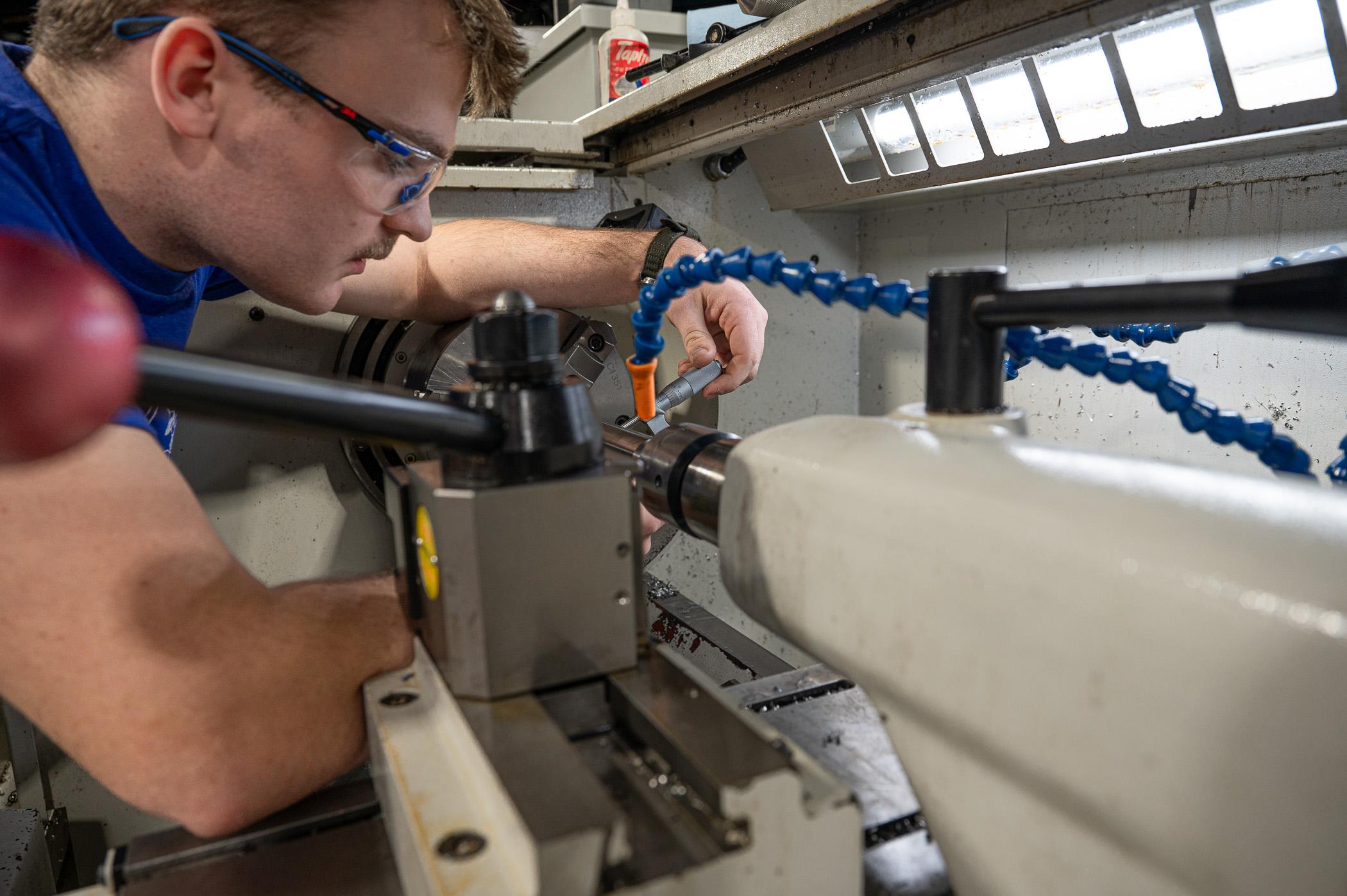 Nick J. Benninger, of Bloomsburg, shows precision is paramount when machining parts for the Baja SAE off-road vehicle.