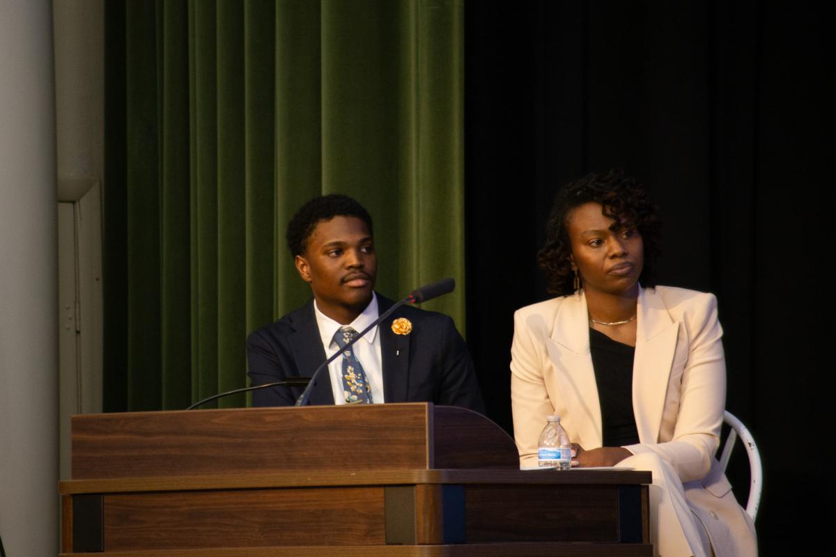Penn College junior Jashonda S. Scott, a human services & restorative justice student, was a moderator along with Cyn-Sere Khalil Coney, a senior at Williamsport Area High School who is the current “Mr. Millionaire.”