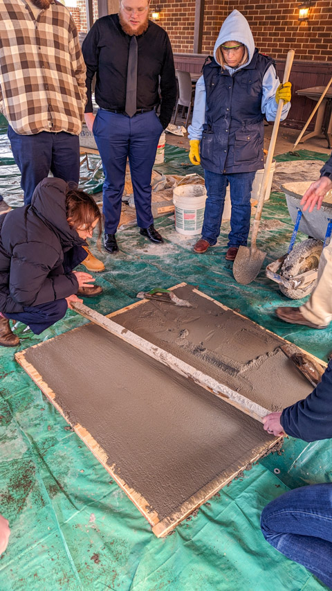 The faculty were assisted by concrete science technology students Sam K. Brost, of Big Falls, New York; Trent B. Morrison, of South Williamsport; and Dawson J. Schoffstall, of Tower City; as well as Hintz, a retired instructor of building construction technology. Brost completed an associate degree in building construction technology in 2023. Schoffstall, too, is double majoring in building construction technology and concrete science technology.