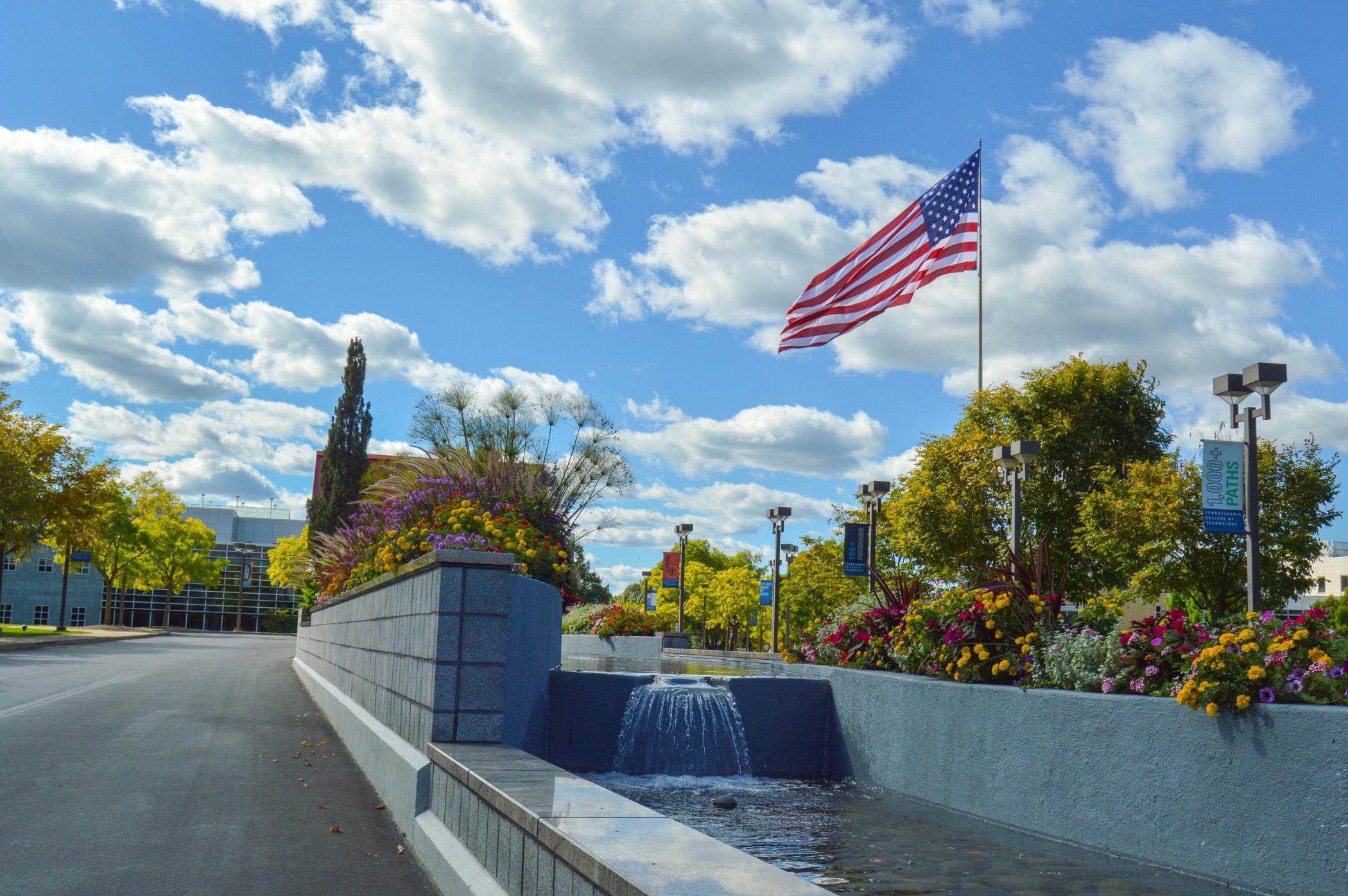 Pennsylvania College of Technology recently received a $5,523 grant from the Williamsport-Lycoming Flags Across America Designated Fund at the First Community Foundation Partnership of Pennsylvania for the perpetual care of the 1,800-square-foot American flag that towers above the school’s main entrance.