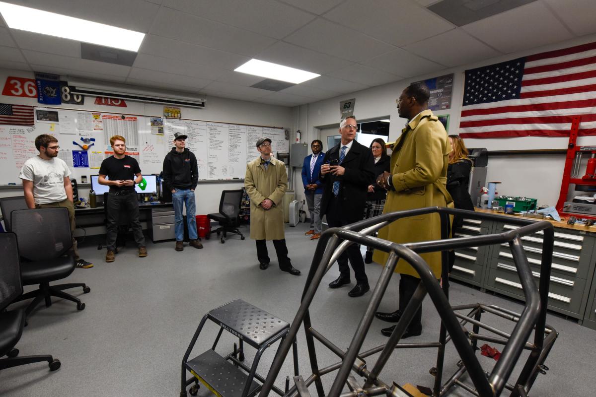 In the Baja Room, the education secretary meets Baja SAE Club members and hears about the international competition Penn College will be hosting in May.