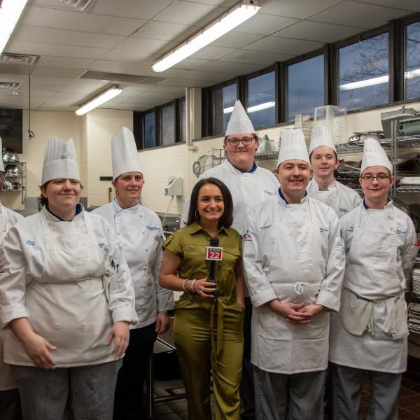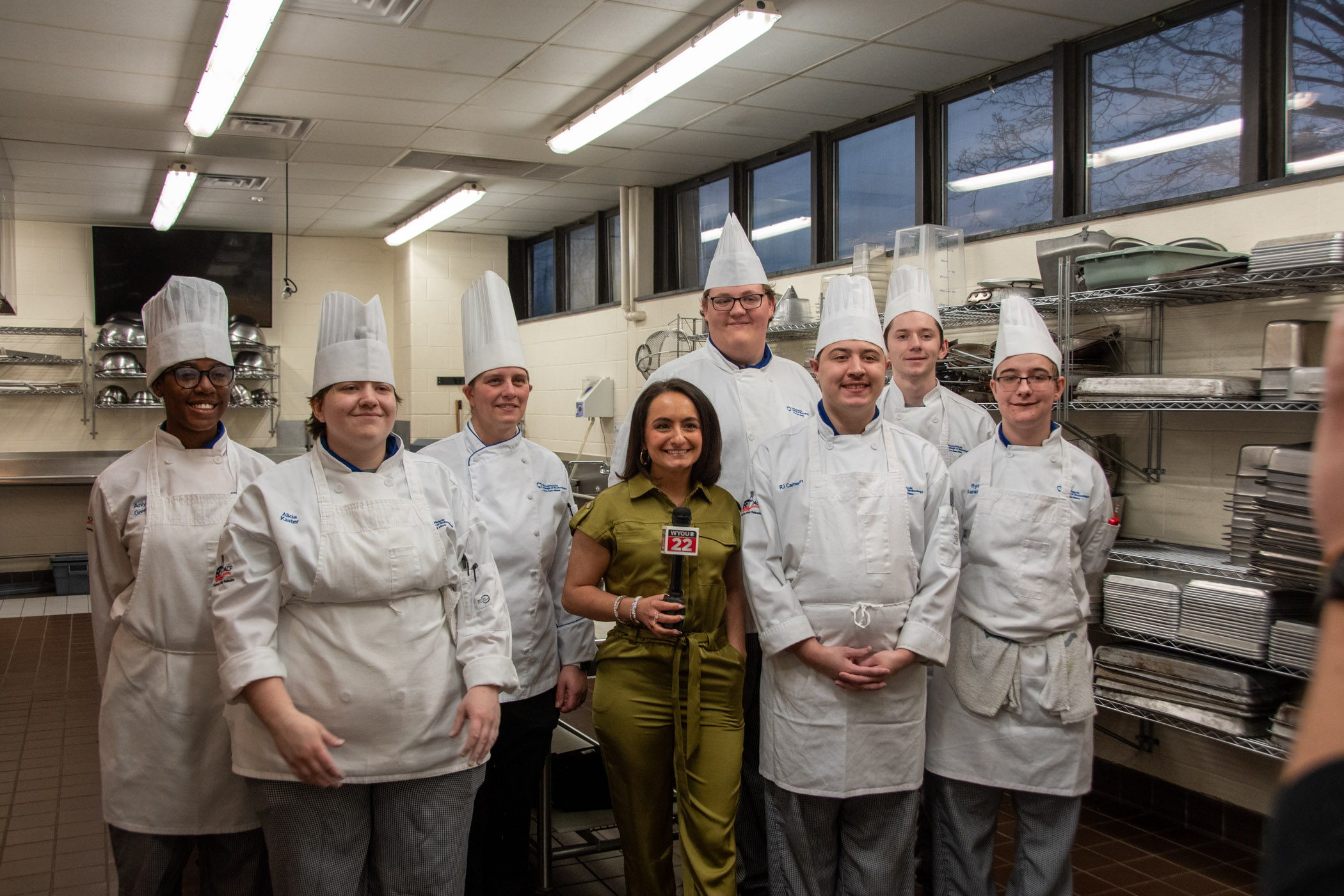 Six students, all in the American Regional Cuisines class taught by Chef Amanda L. Farr-Lepper, assistant professor of culinary arts, took part in the taping: Ryan J. Baranoski, of Mount Carmel; RJ Cameron Jr., of Sunbury; Zachary T. Davies, of Weatherly; Aniya S. Green, of Harrisburg; Alicia M. Kaster, of Titusville; and Nicholas P. Matz, of Schuylkill Haven.
