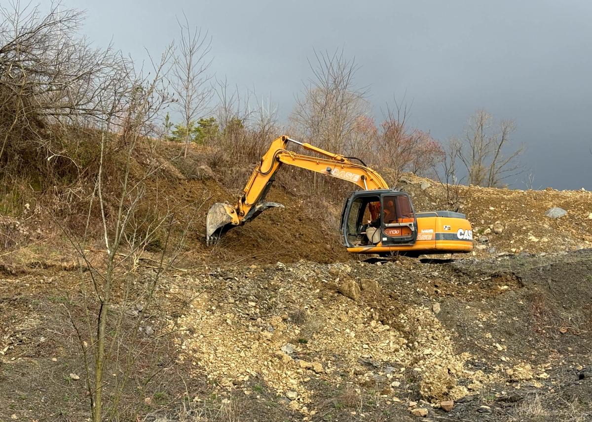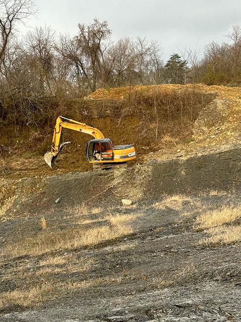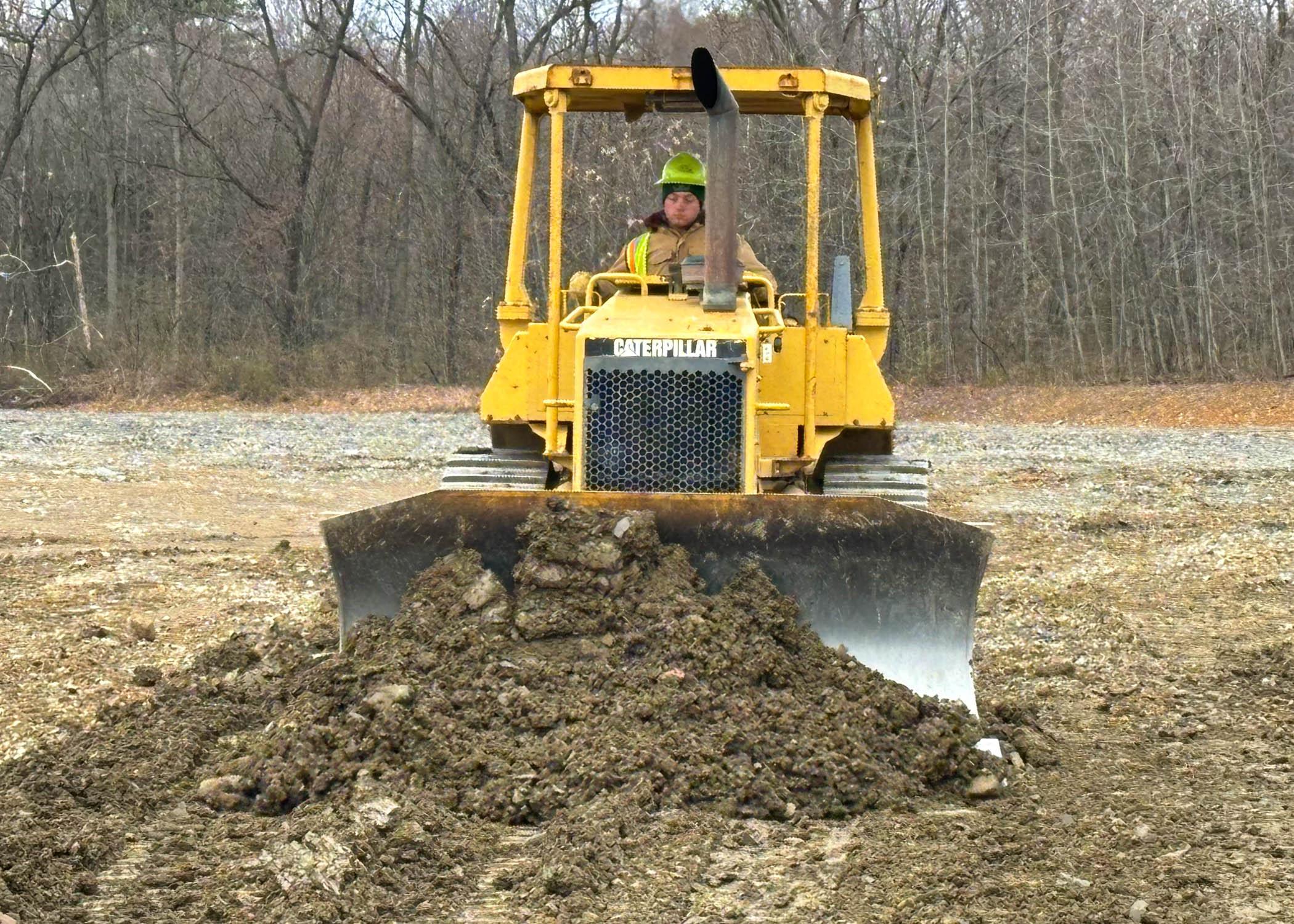 A Penn College student begins moving earth for Baja SAE Williamsport's eventual hill climb course.