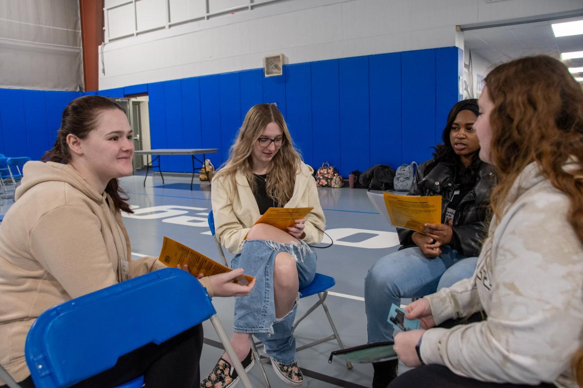 “The Chen family” discusses their options. From left: Alexia Seyler, dental hygiene; KyLeigh L. Alexander, dental hygiene; Temitope Olanrewaju, nursing LPN-RN; and Abby Keister, nursing.