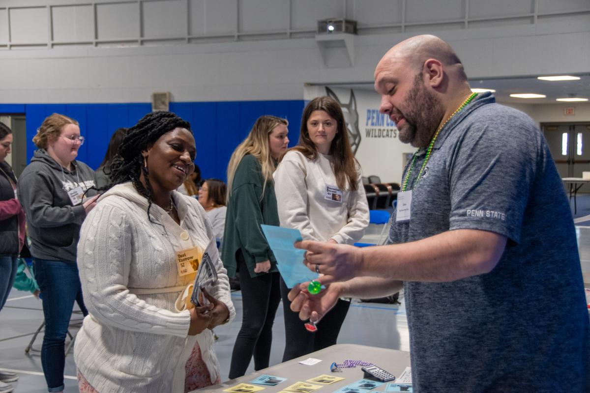 Ama Surwaa, a nursing LPN-RN student from Port Royal, negotiates with the proprietor of “Big Dave’s Pawn Shop” (played by nursing instructor Steve C. Sofopoulos).