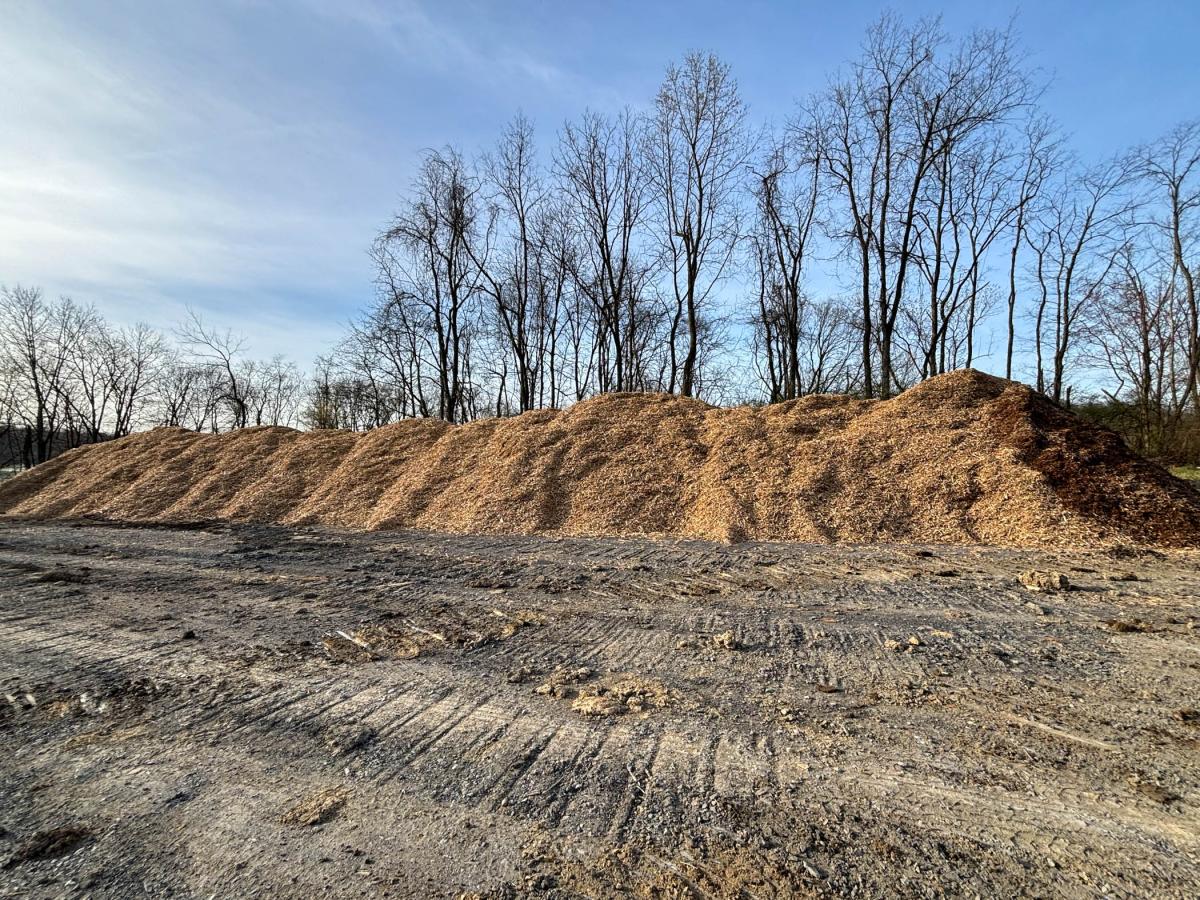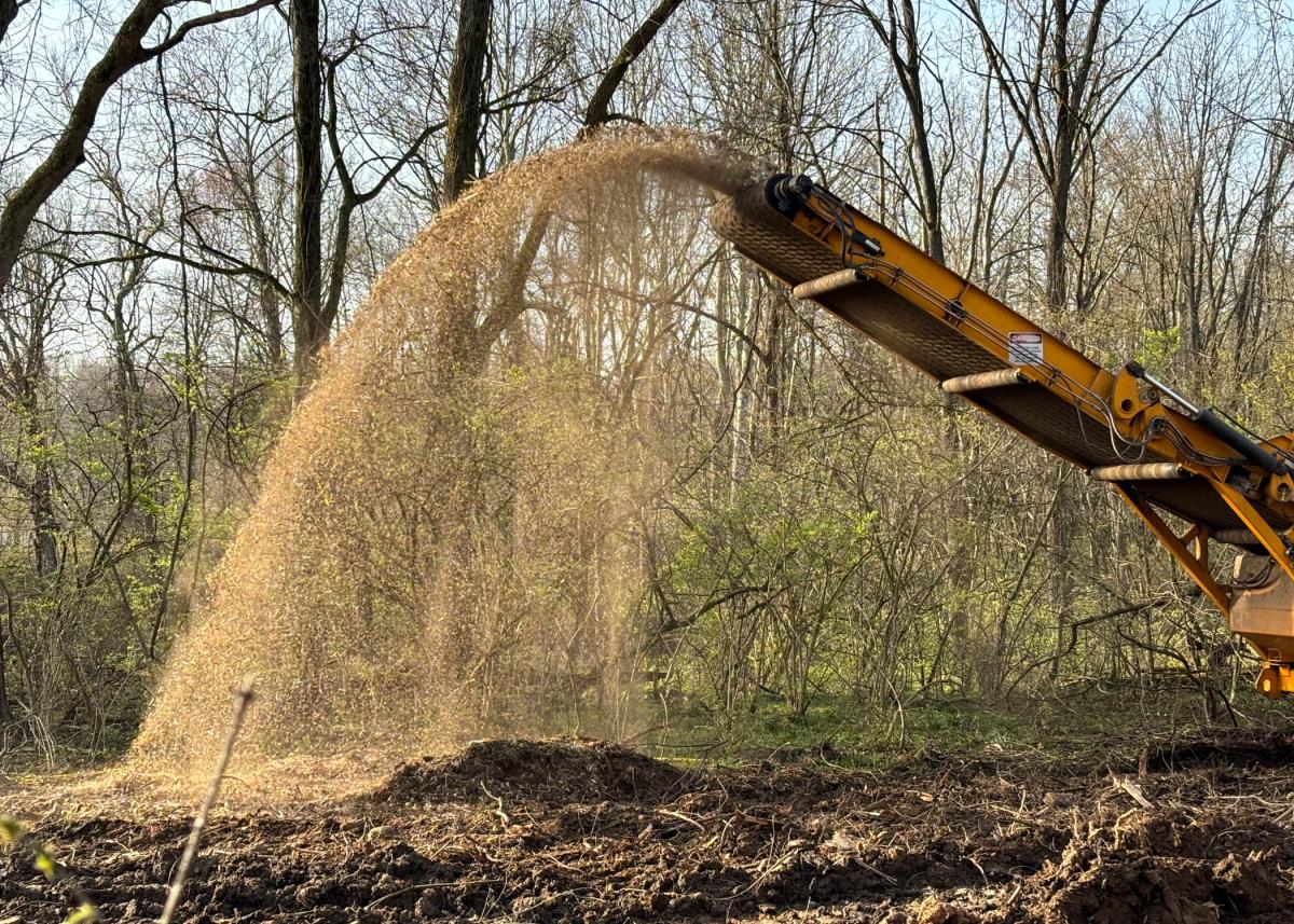 The company employs a whole tree grinder to transform the logs and brush into mulch.