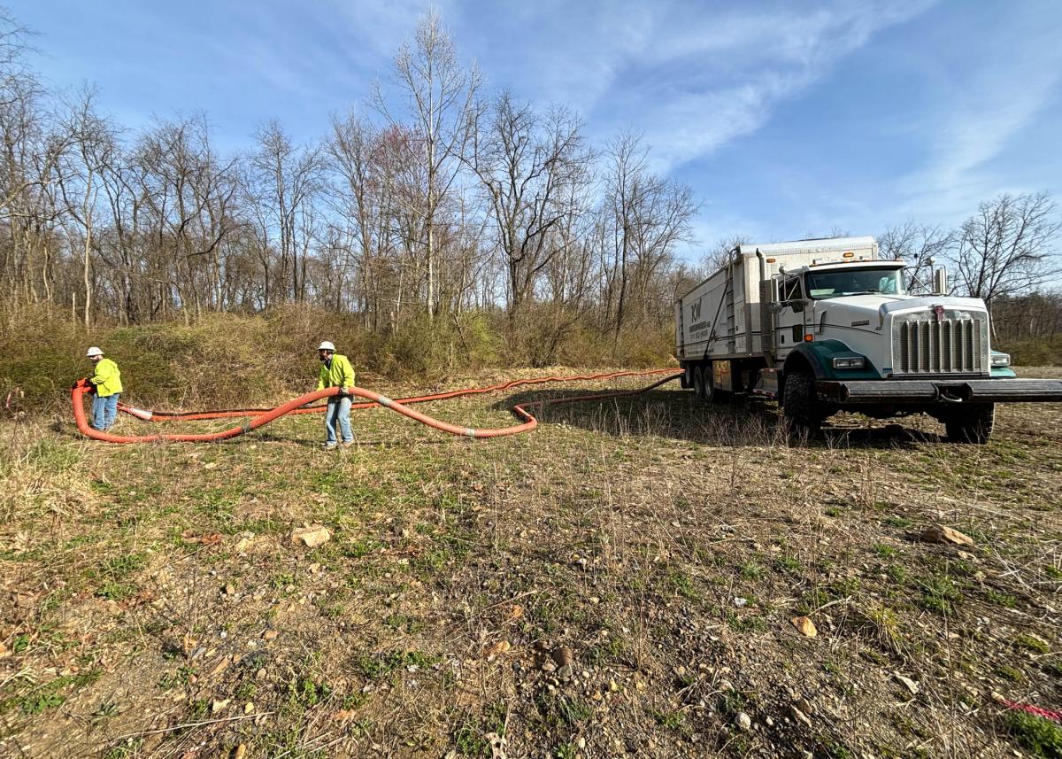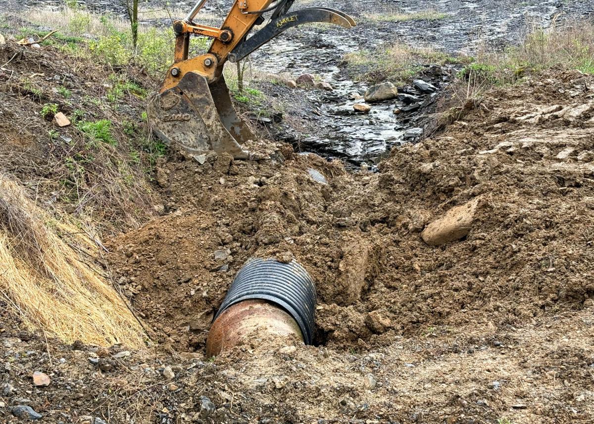 The pipe will drain excess water from the adjacent shale pit.