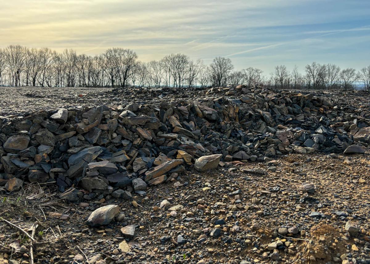 Just some of the 14,000 tons of shale being used to transform three dirt fields into “parking lots.”