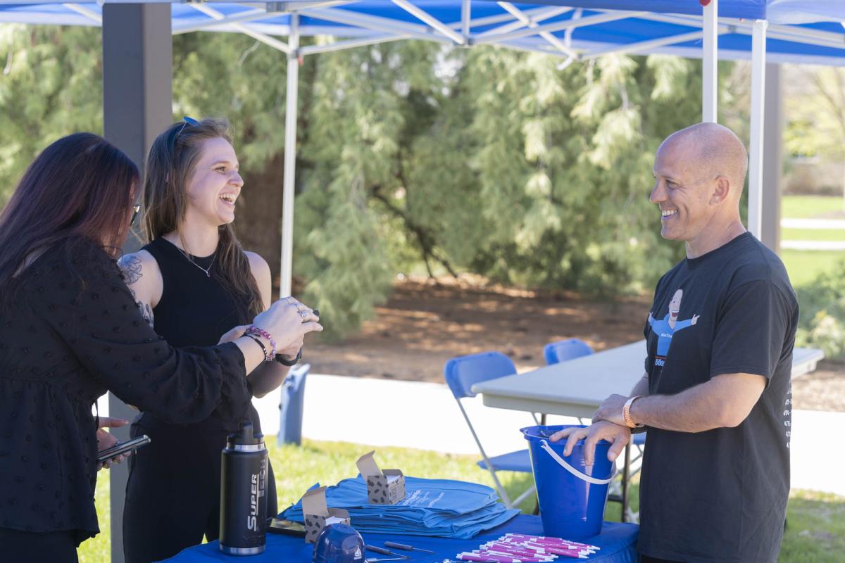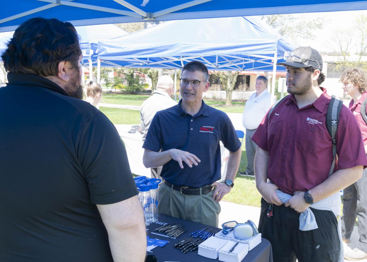 Automotive staff and faculty enjoy the outdoor venue. From left: Steven P. Keen, assistant dean of transportation technologies; and Jeffrey M. Januchowski and Christopher H. Van Stavoren (in red shirt), assistant professors of automotive.