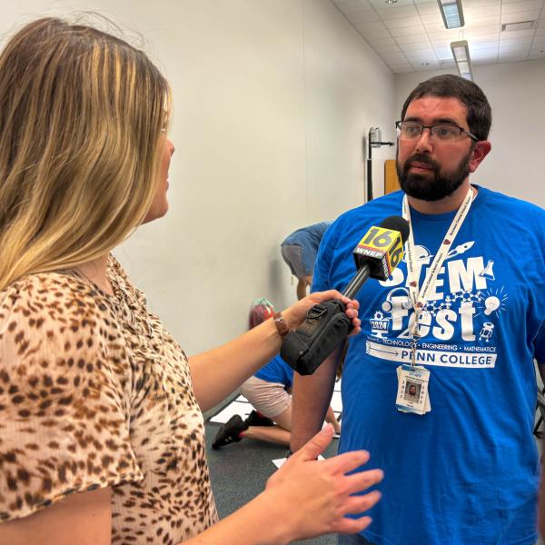 WNEP-TV’s Mackenzie Aucker visited campus to produce a story on Penn College hosting STEMFest, a celebration of engineering and technical careers for middle school students and educators.
