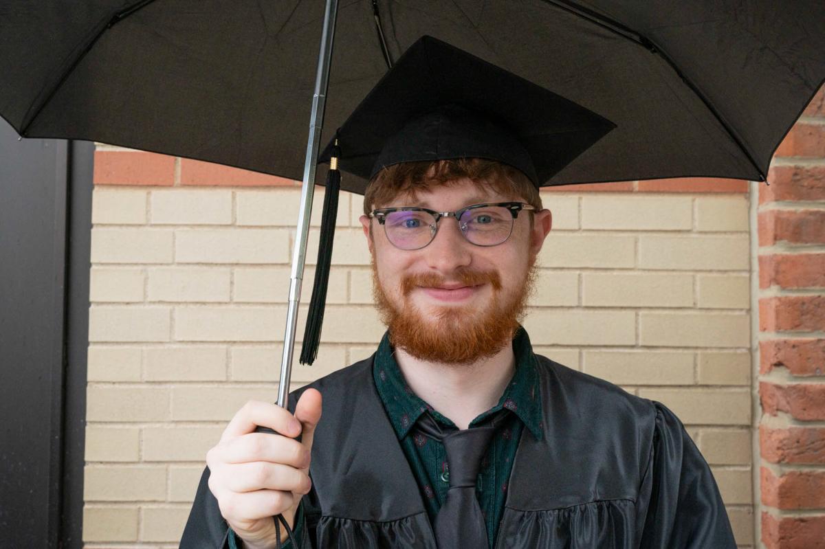Graphic design grad Brock R. Hower shows off the best accessory of the weekend.