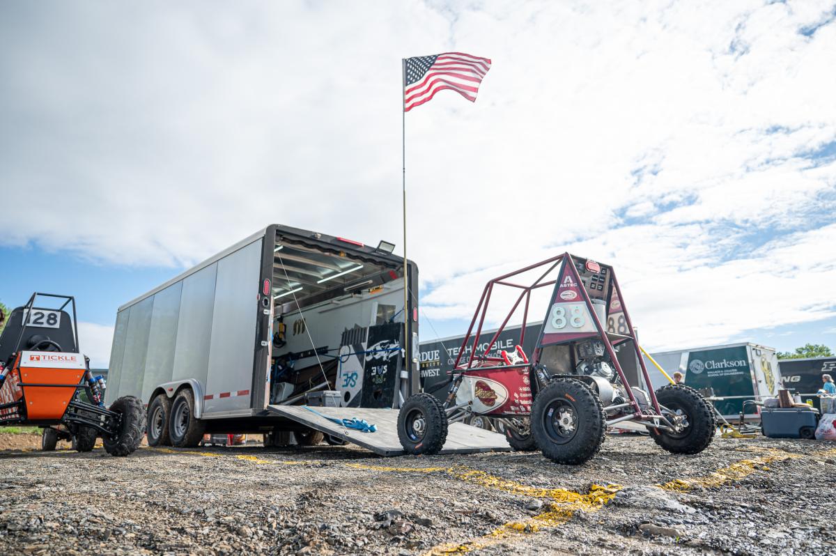 Baja SAE teams from across the U.S., Canada and Brazil, settle into their paddocks at Penn College's Heavy Construction Equipment Operations Site on day one of Baja SAE Williamsport. Competition action occurs on Saturday and Sunday and is free and open to the public.