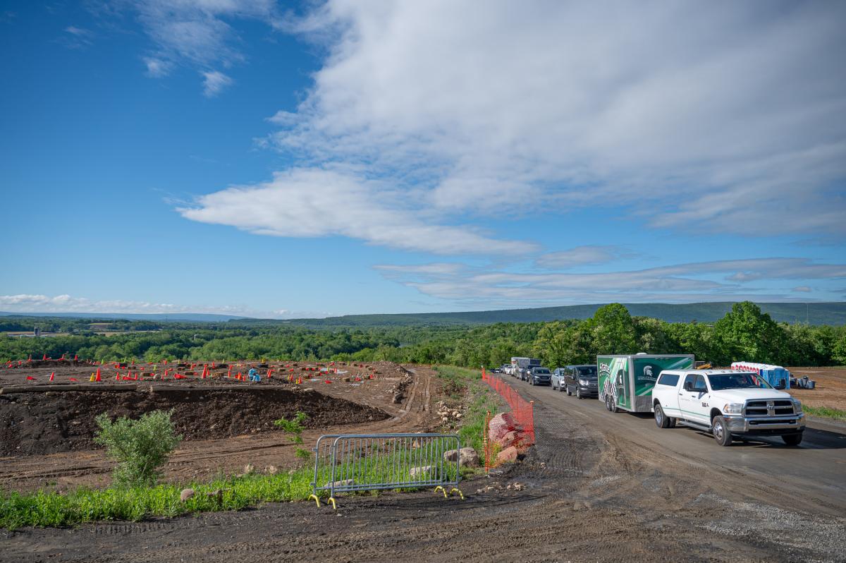 Team trailers wind their way into the competition site, surrounded by the beauty of northcentral Pennsylvania.