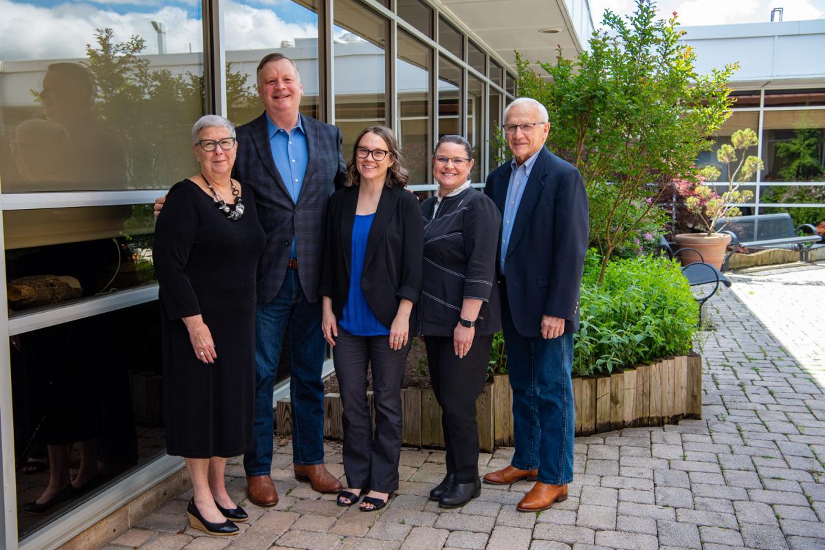 Judges for the business presentations, held at the college's Earth Science Center, are (from left): Gilmour, Marr, Bukeavich, Massey and Yaw.