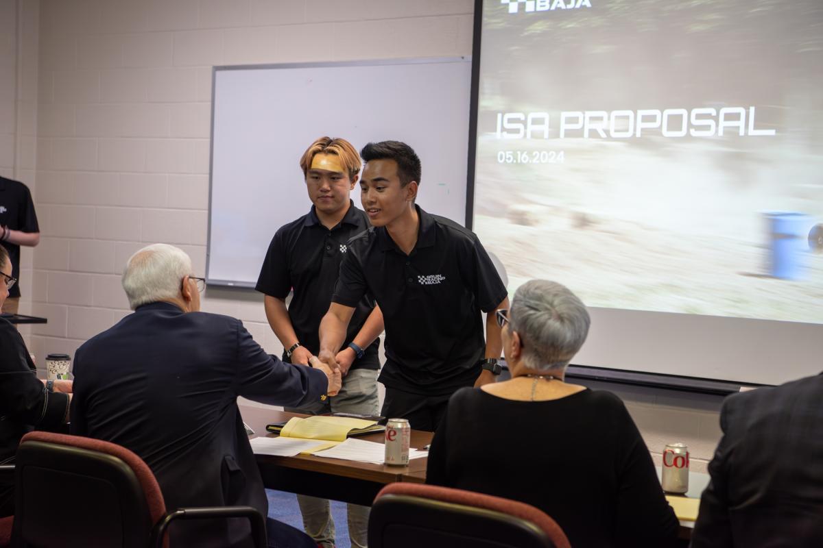 Nearby, at Penn College's Schneebeli Earth Science Center, business presentation finals were held for teams engaging in that portion of the SAE competition. The student teams acted as nonprofit groups vying for the opportunity to provide utility task vehicles to government and private utility companies to support their ability to prevent future fires and derailments and for emergency response. Judges for the business presentations were: Sen. Gene Yaw, chair of Penn College's Board of Directors; Davie Jane Gilmour, president emerita of the college; Summer Bukeavich, associate professor of business administration/management & marketing at Penn College; Shannon Massey, senior vice president and general manager, Lycoming Engines; and Michael Marr, director of government relations & compliance, Encina.