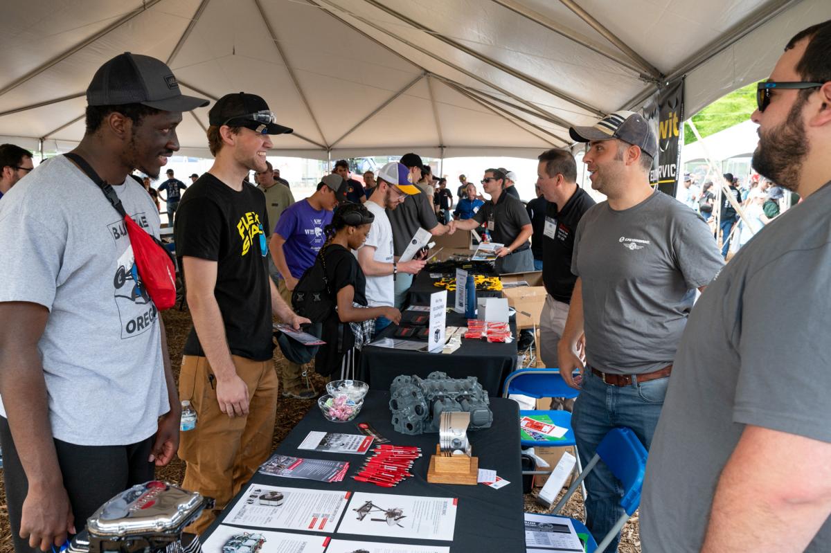 Another sponsor, Pneu-Dart Inc., also steps up to the table to network with teams.