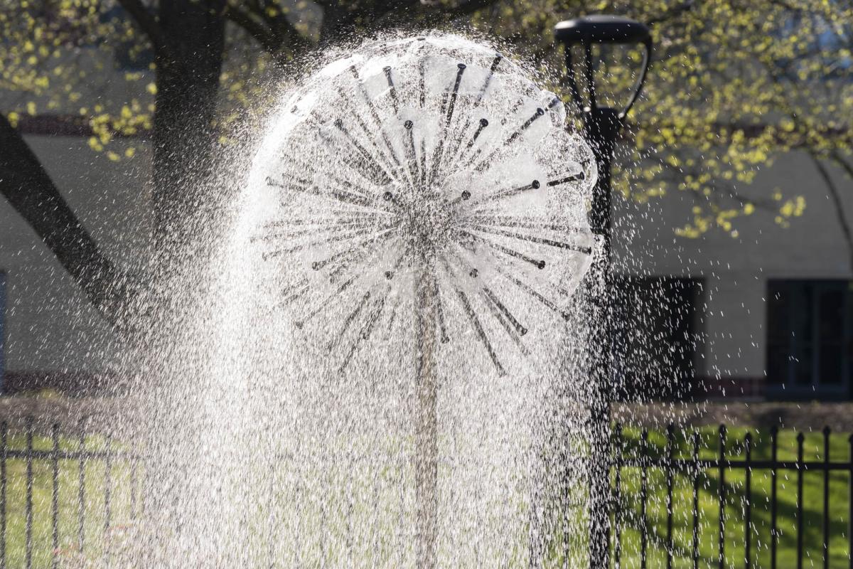 Showering campus with its beauty, the "dandelion sprinkler" on the lawn of the Victorian House always delights.