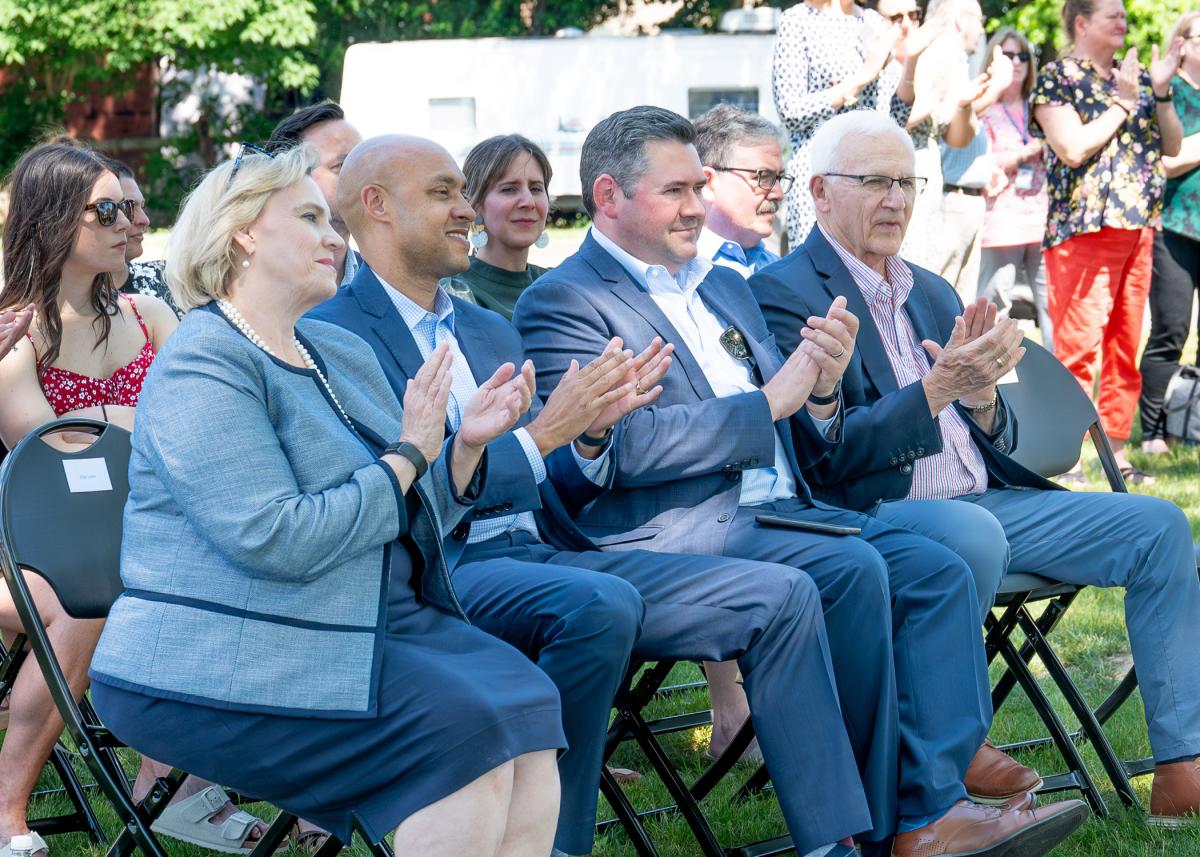 On an ideal June afternoon, President Reed welcomes the gathering of special guests and college employees at the Park Street site.