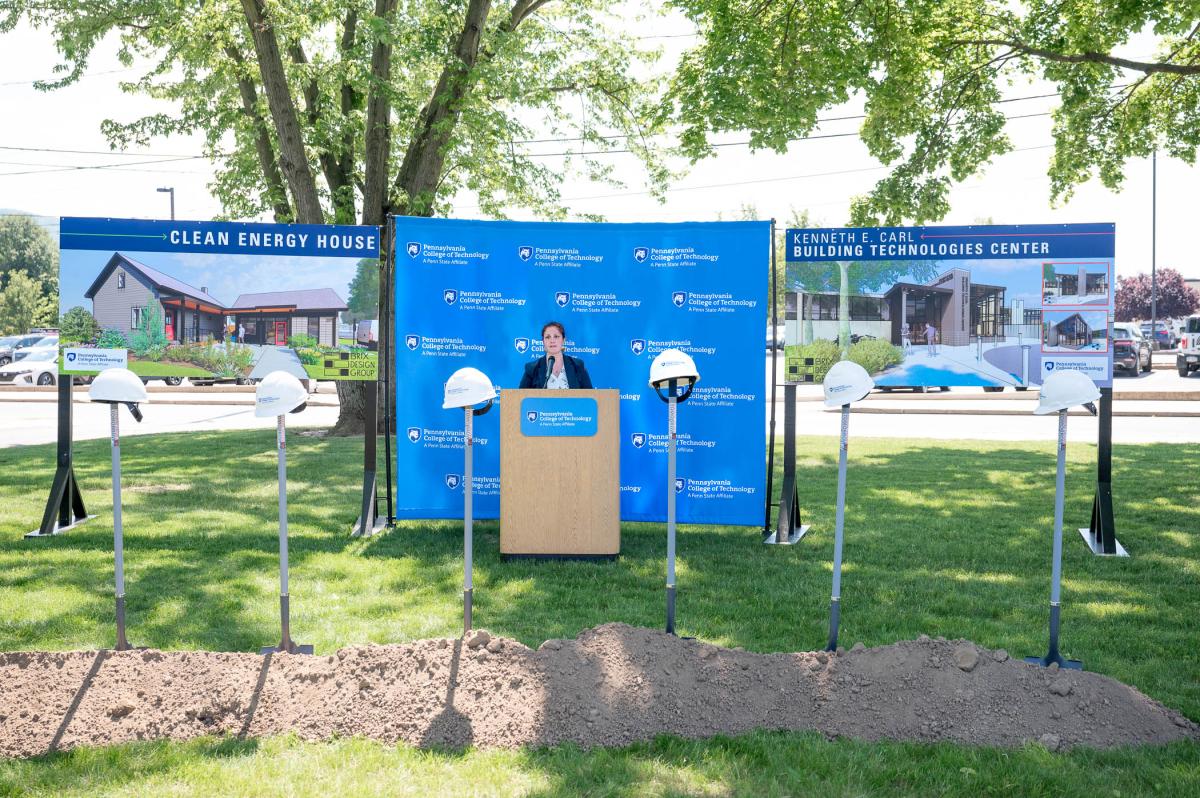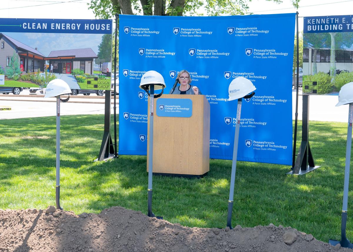 Pennsylvania College of Technology held a groundbreaking ceremony Thursday for two projects funded, in part, by a $2 million U.S. Department of Commerce Economic Development Administration grant: construction of an 1,800-square-foot Clean Energy House and renovations at the Carl Building Technologies Center on main campus.