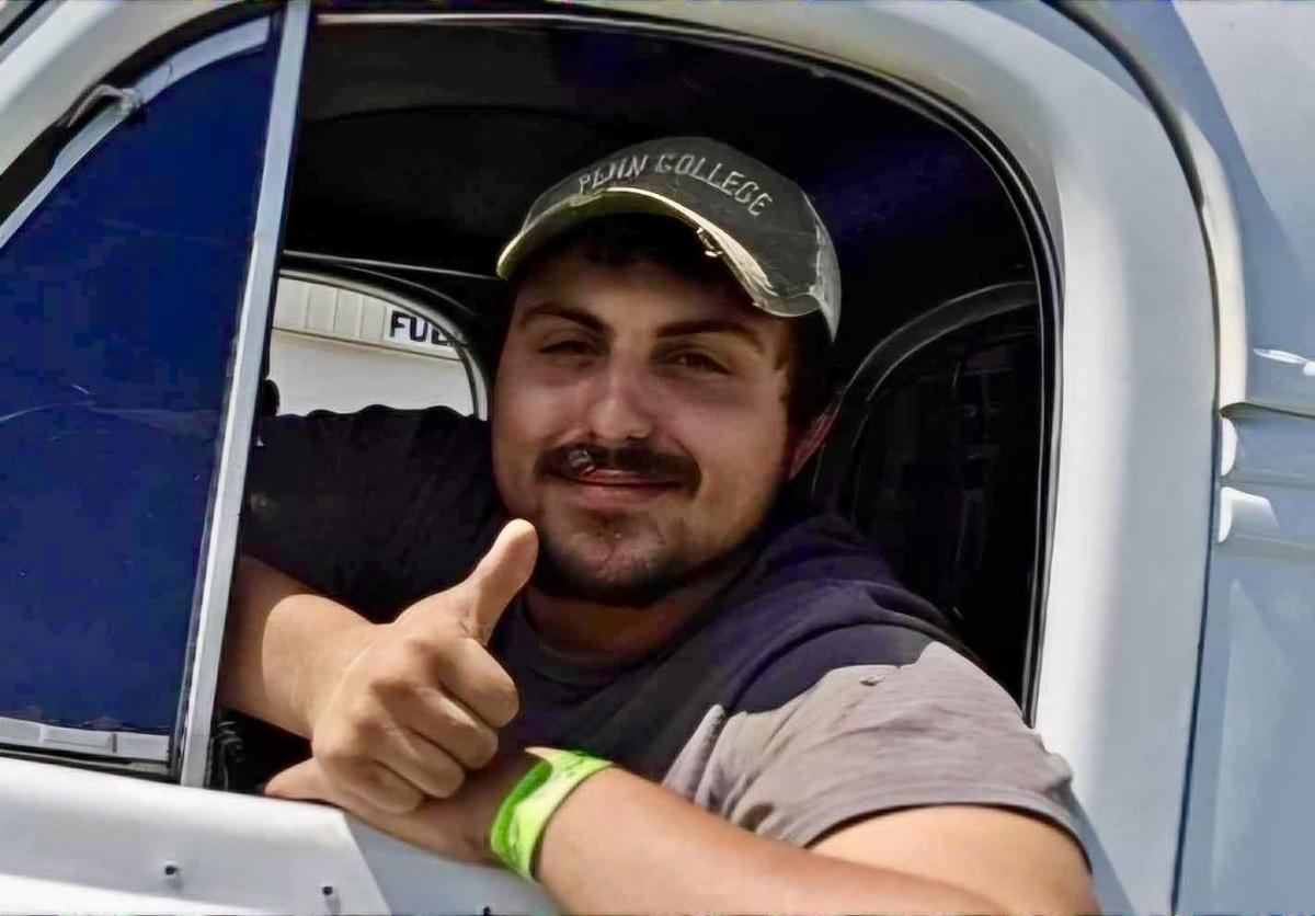 Spinosa gives a thumbs-up at Beaver Springs Dragway, following the "test and tune" in anticipation of the East Coast Truck Nationals on Saturday, June 22 at Numidia Dragway. Spinosa is dual-majoring in heavy construction equipment technology: operator emphasis and technician emphasis.