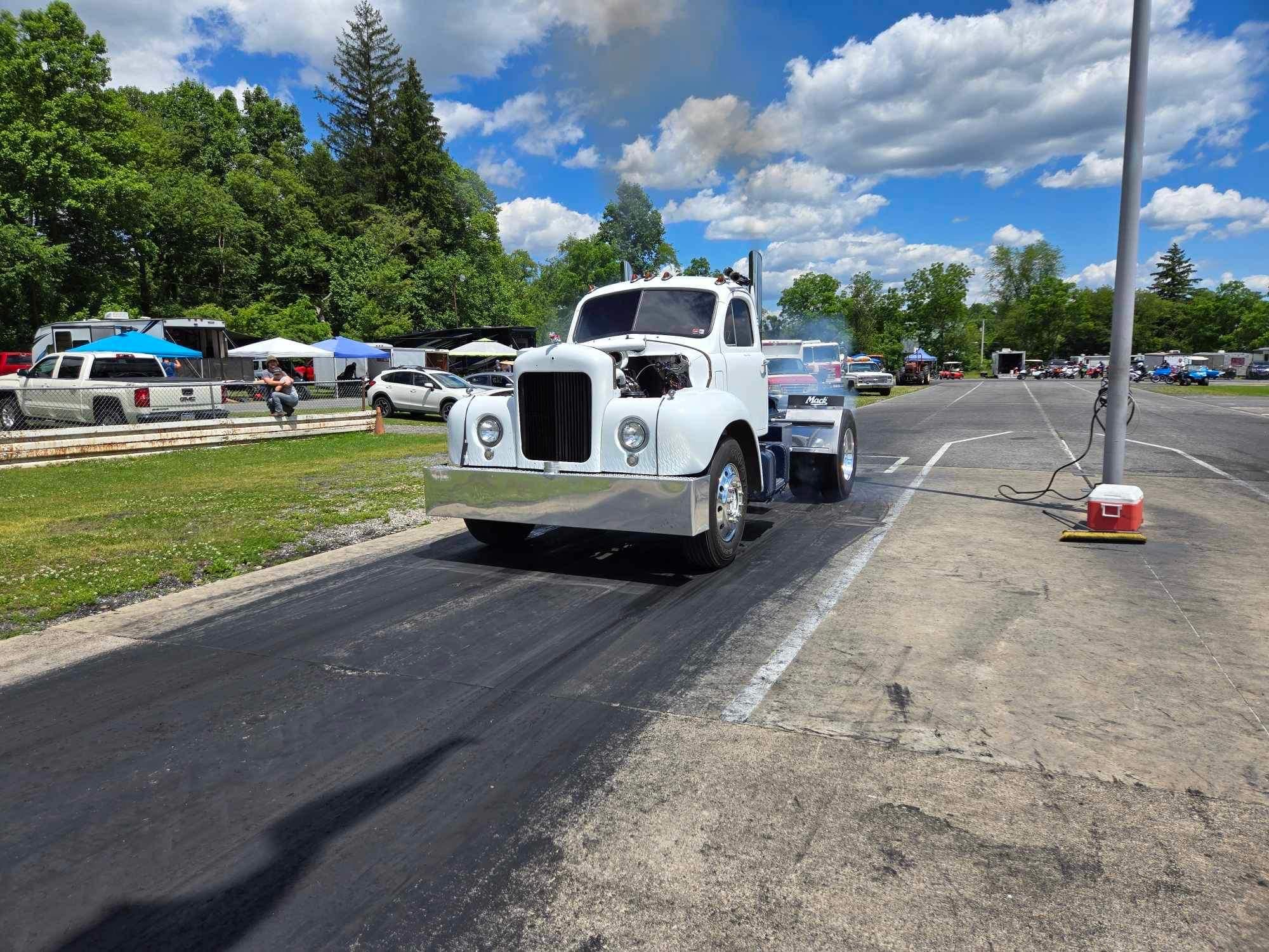 In anticipation of the East Coast Truck Nationals, set for this Saturday, June 22 at Numidia Dragway in Columbia County, "Accelerated Learning," the 1959 B-61 Model Mack drag truck operated by Penn College's Diesel Performance Club, visited Beaver Springs Dragway in Snyder County this past Saturday for a pre-competition test and tune.