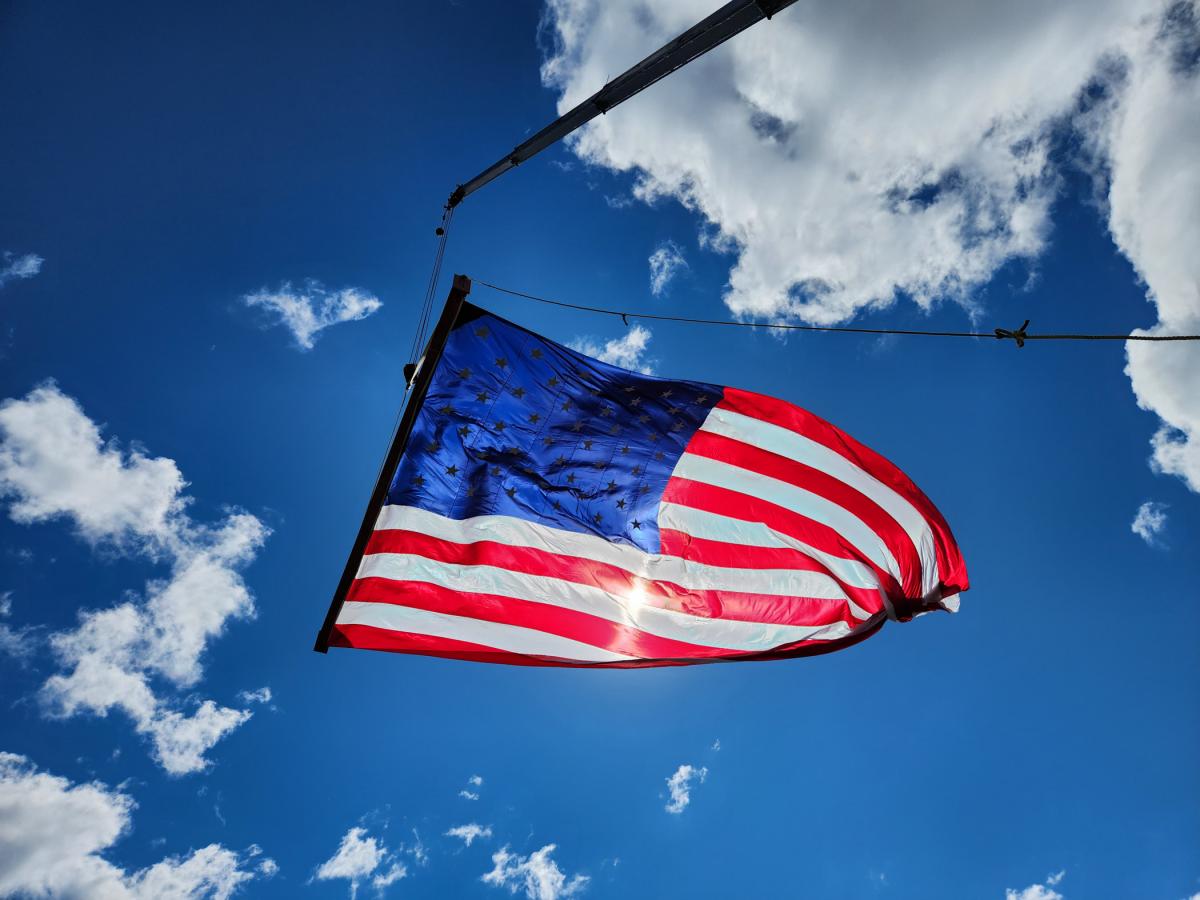 Old Glory, hoisted by a crane provided by Allison Crane & Rigging, provides perspective.