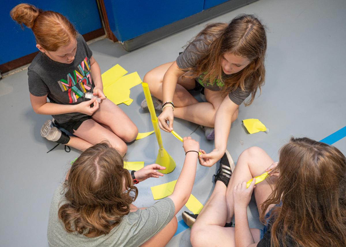 ... invites campers to construct a tall, free-standing structure with paper and tape.