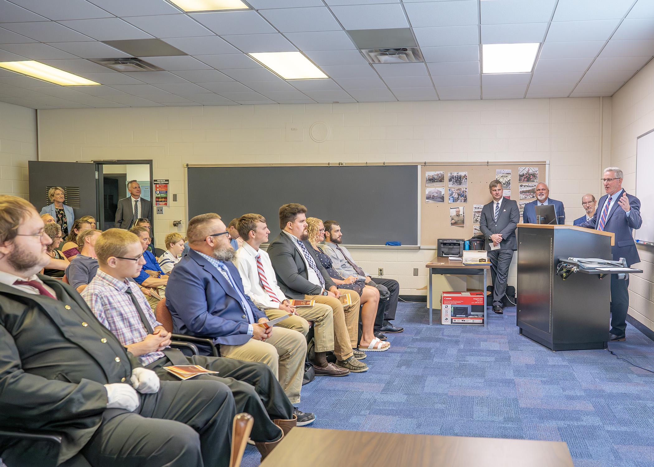 Pennsylvania Secretary of Agriculture Russell E. Redding addresses graduates of the National Hardwood Lumber Association’s Inspector Training School. The eight-week certification course was held at Penn College’s Schneebeli Earth Science Center.