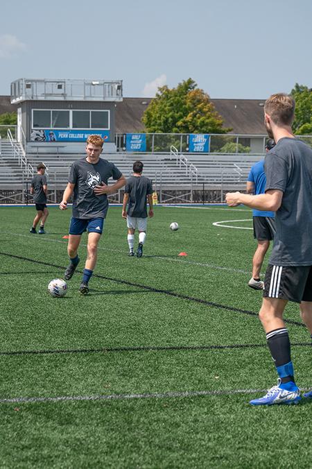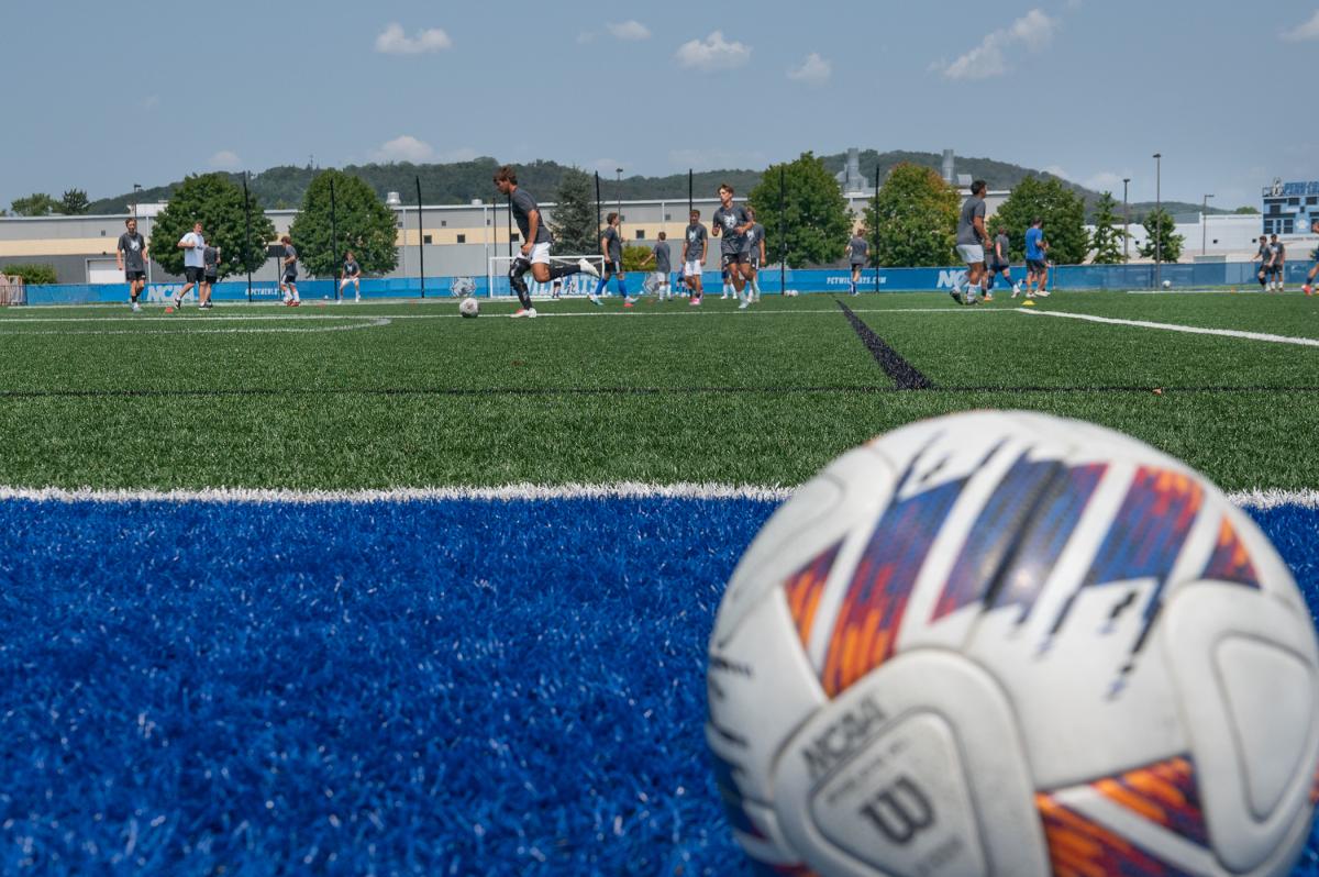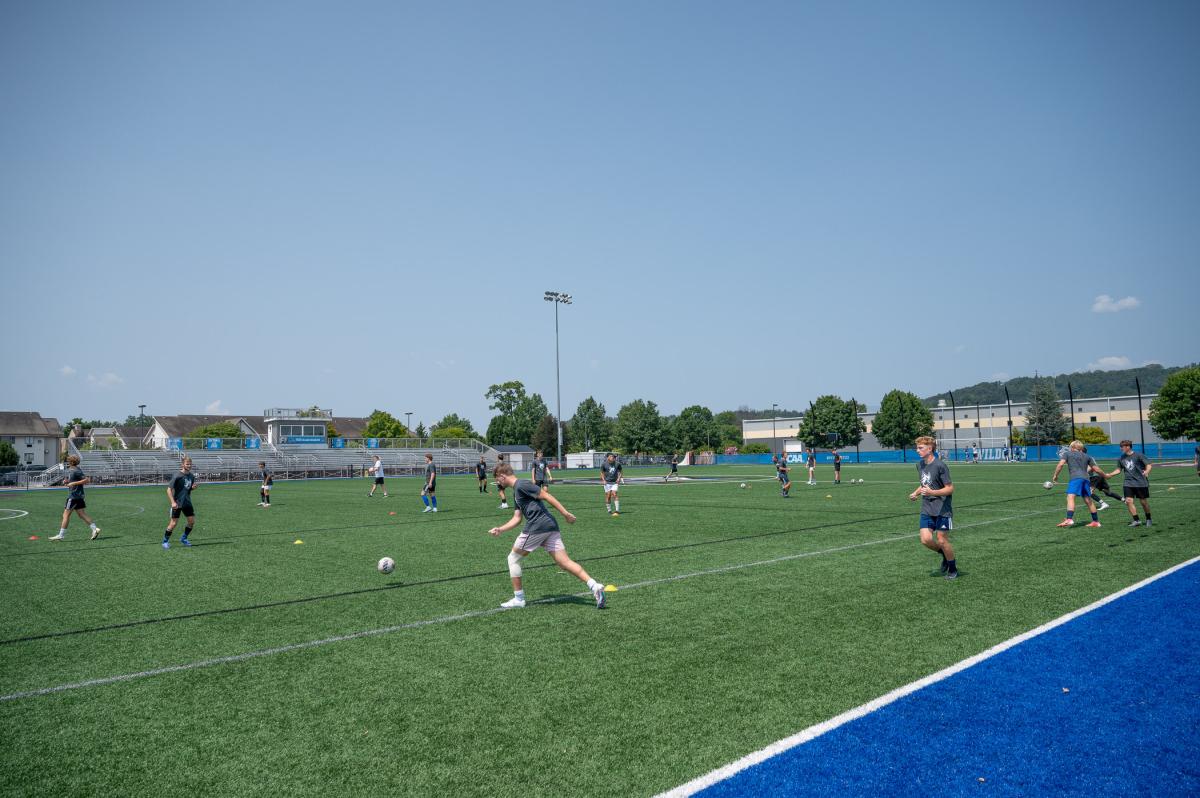 Dakoda Buzzy, a freshman in residential construction technology & management from Oneonta, New York, gets a feel for the UPMC Athletic Field.