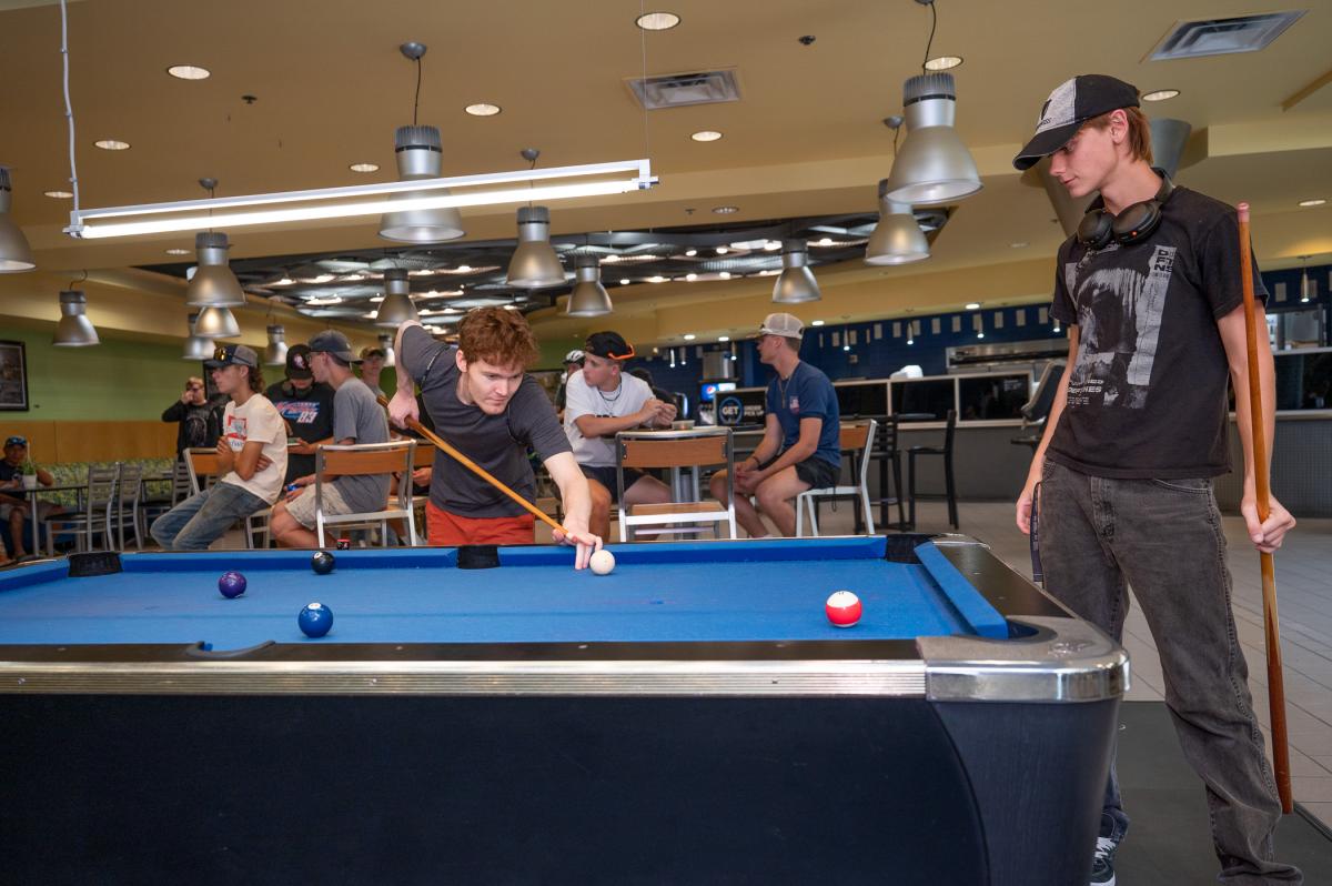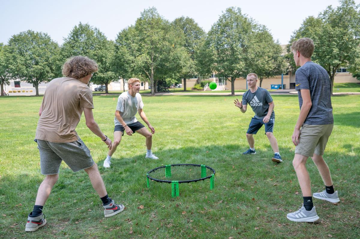 Sidewalks near the residence halls are utilized for cornhole competitions.