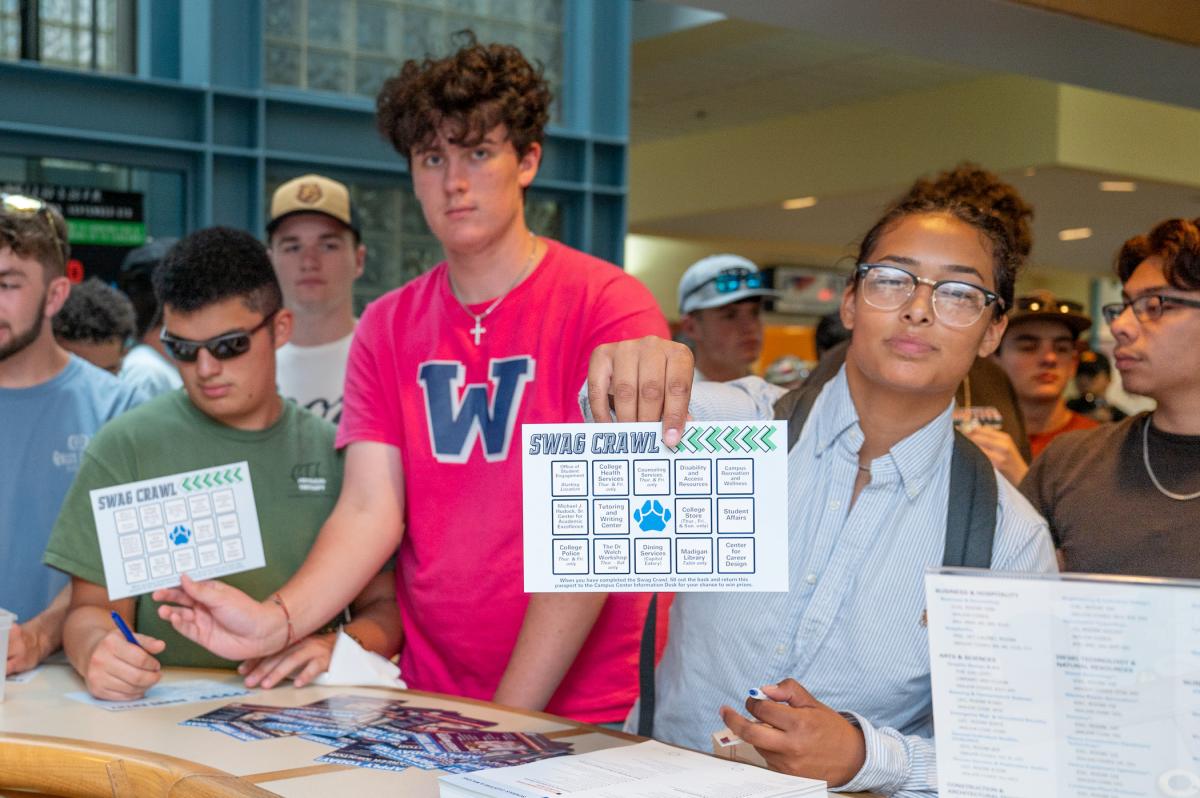 Swag Crawl "game cards" are a hot ticket in the Bush Campus Center.