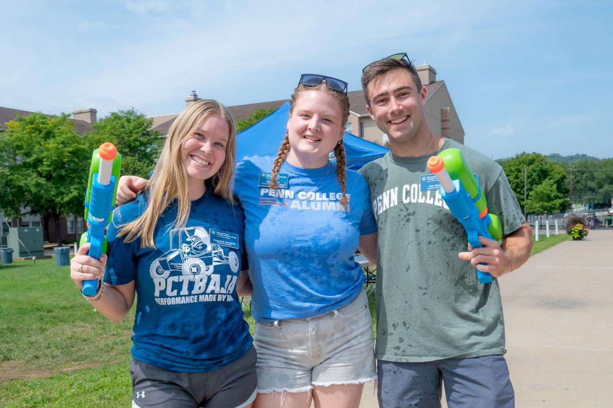 ... and balances work with Super Soaker fun (joined by Resident Assistants Stephanie Campbell and Alec D. Rees).