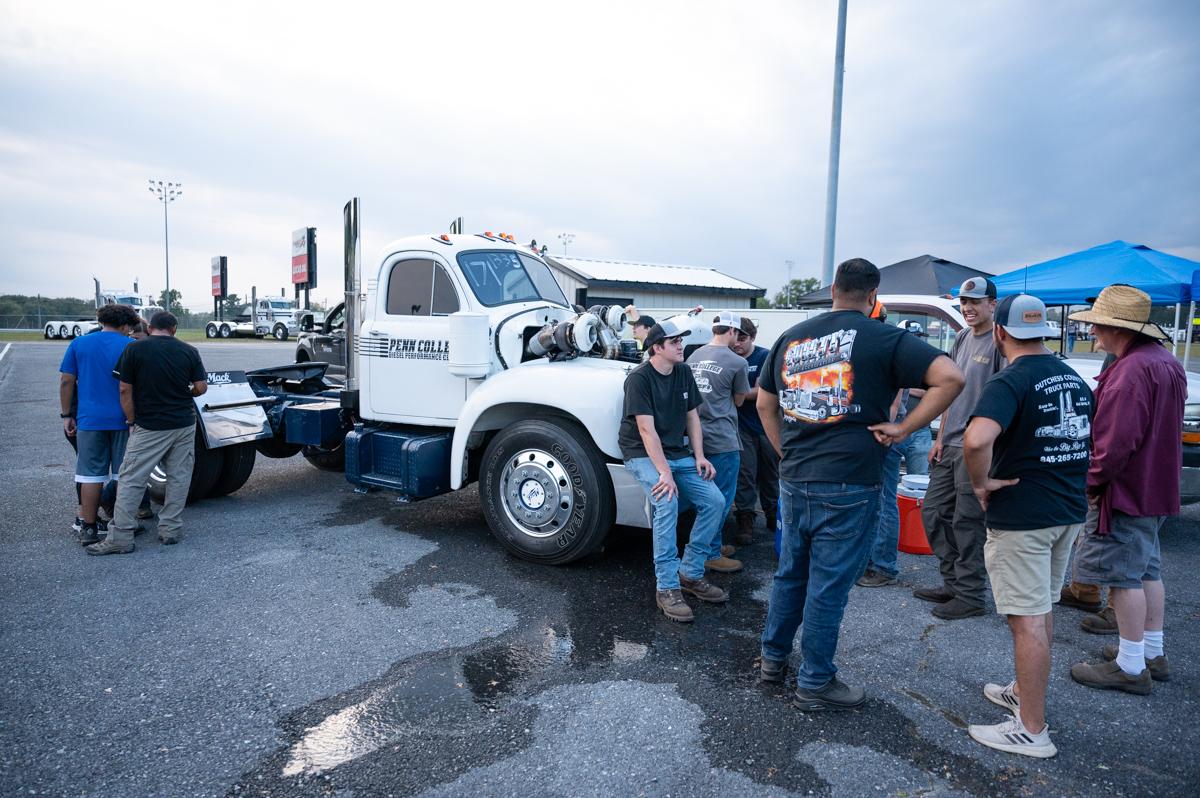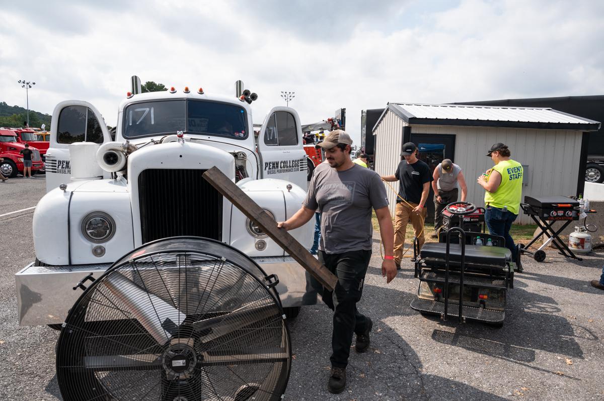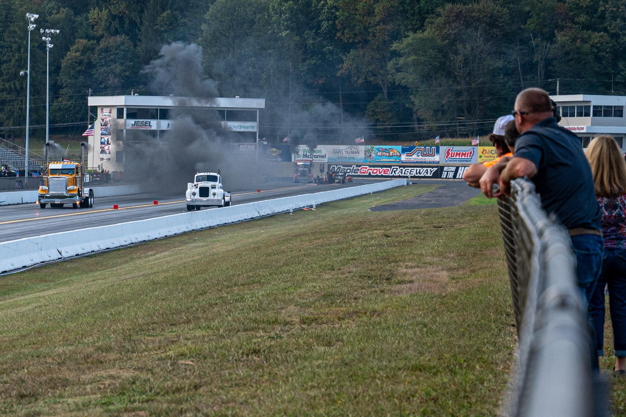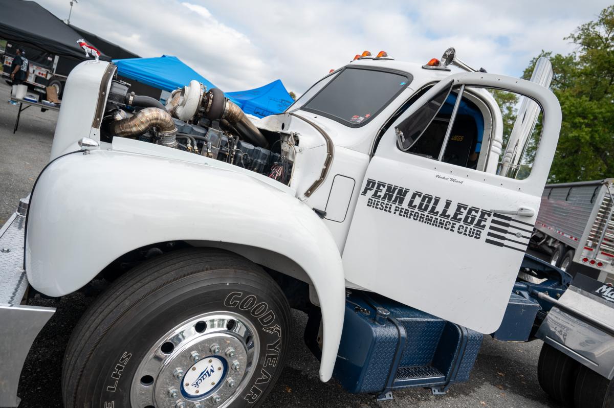 “Accelerated Learning,” the 1959 B-61 Mack drag truck (white vehicle) operated by Pennsylvania College of Technology’s Diesel Performance Club, competes in the Keystone Truckin’ Nationals, held Sept. 21 at Maple Grove Raceway in Berks County. The truck captured first place in the Diesel Big Rig Bracket 1 division and finished second in the “King of the Hill” grand finale.