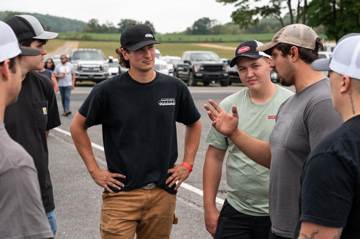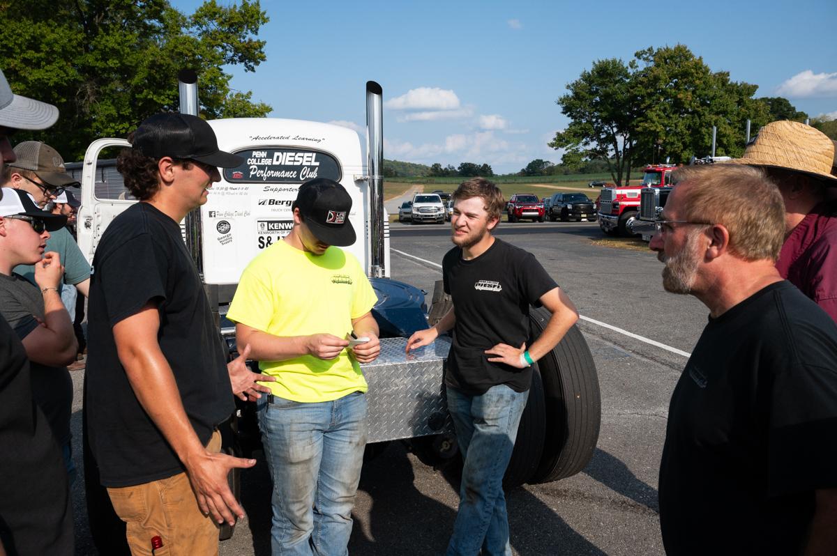 Earlier in the day, Diesel Performance Club members, alumni and advisers gather at Maple Grove Raceway, south of Reading, for a group photo. The Keystone Truckin’ Nationals was just the second sanctioned competition the club has entered.