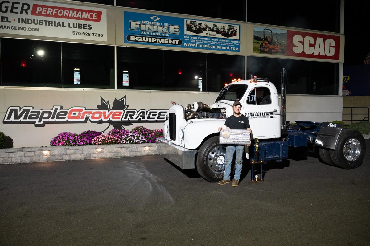 Racing against the “fastest trucks in the East,” Pennsylvania College of Technology’s 1959 B-61 Model Mack drag truck claimed first place in the Diesel Big Rig Bracket 1 division and finished second in the “King of the Hill” grand finale at the Keystone Truckin’ Nationals, held Sept. 21 at Maple Grove Raceway in Berks County.