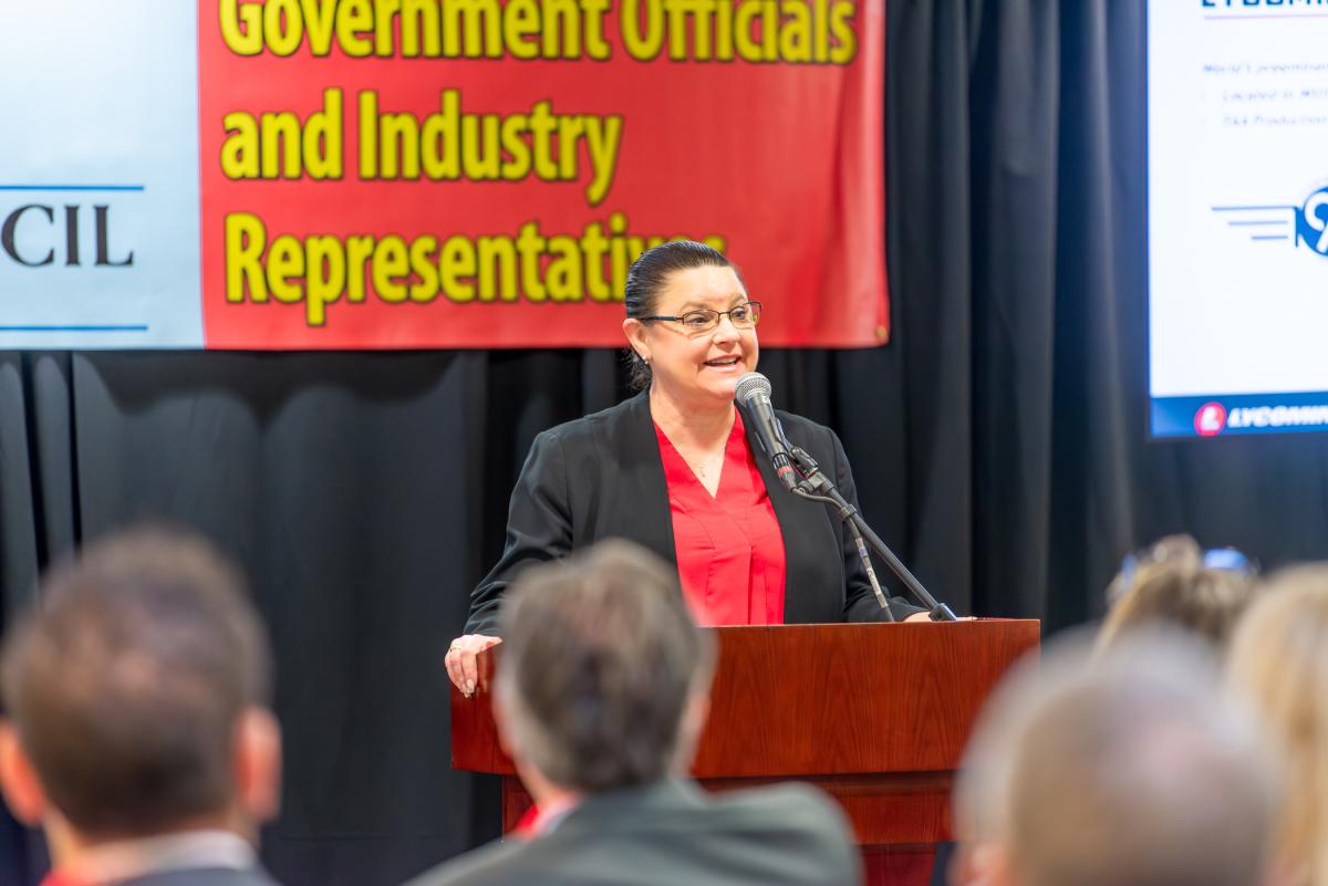 Massey addresses the audience, sharing the successes of Lycoming Engines and introducing Reed ...