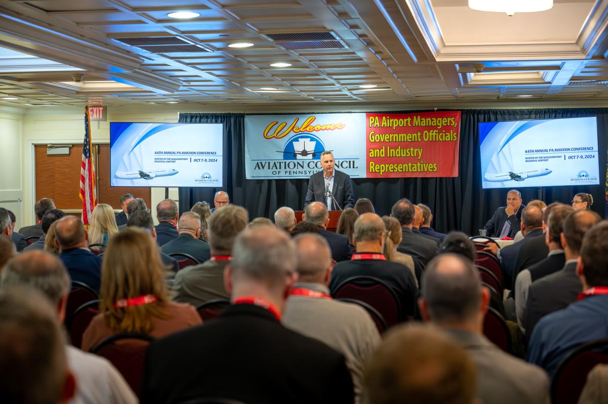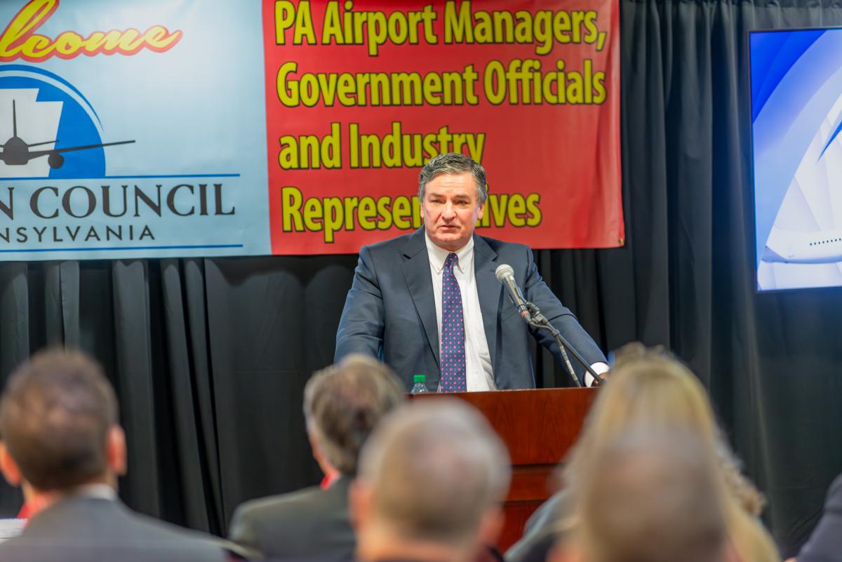 Michael J. Reed, president of Pennsylvania College of Technology, addressed the Opening General Session of the 44th annual conference of the Aviation Council of Pennsylvania, held Tuesday at the Holiday Inn Williamsport. Delivering the keynote address at the session was Michael B. Carroll, state secretary of transportation.