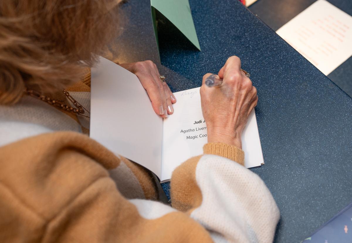 The author signs a copy to stay at the CLC.