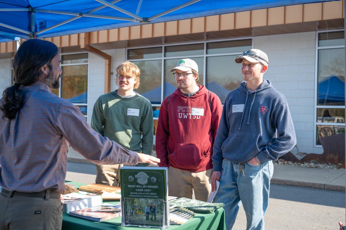 Taking advantage of ideal autumn weather, a Recruitment Day for landscape/horticulture and forestry majors sets up shop in front of the Schneebeli Earth Science Center.
