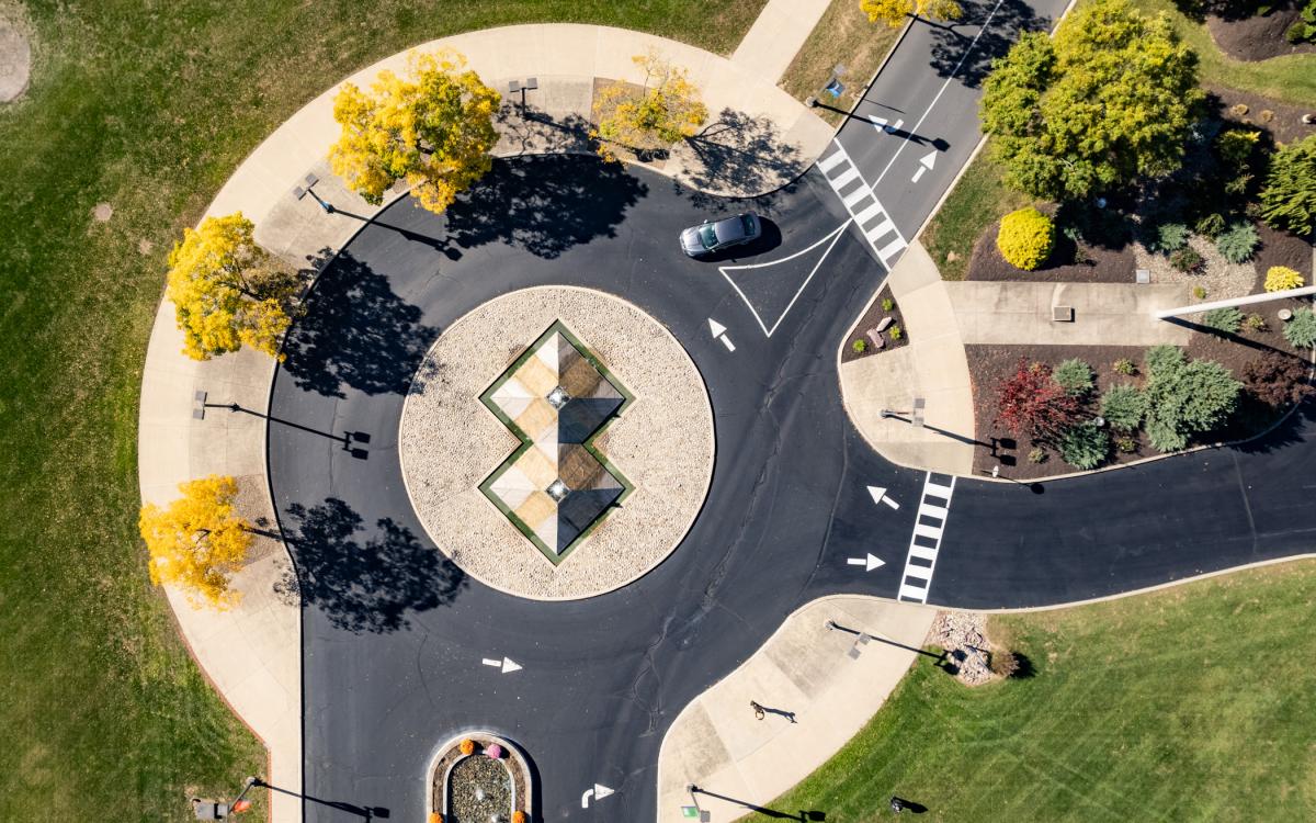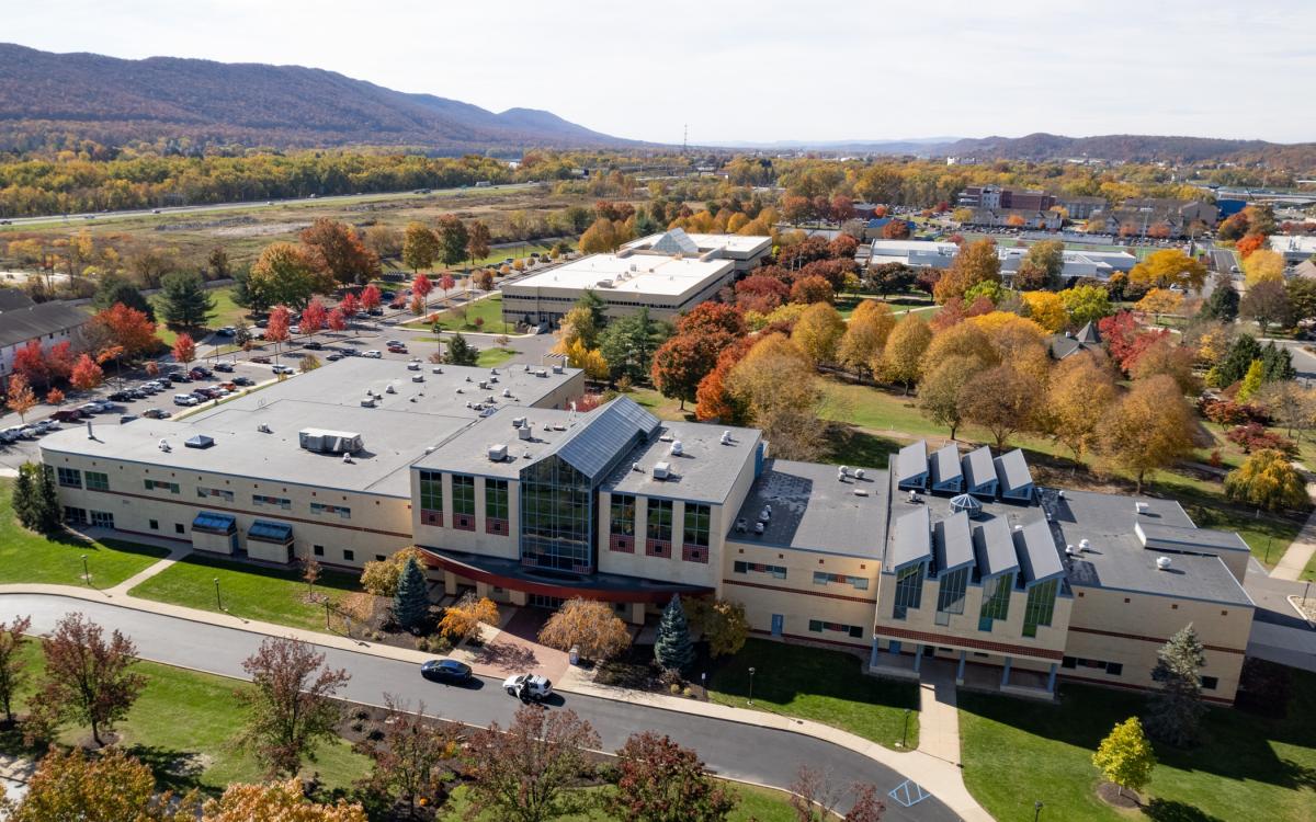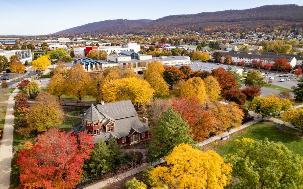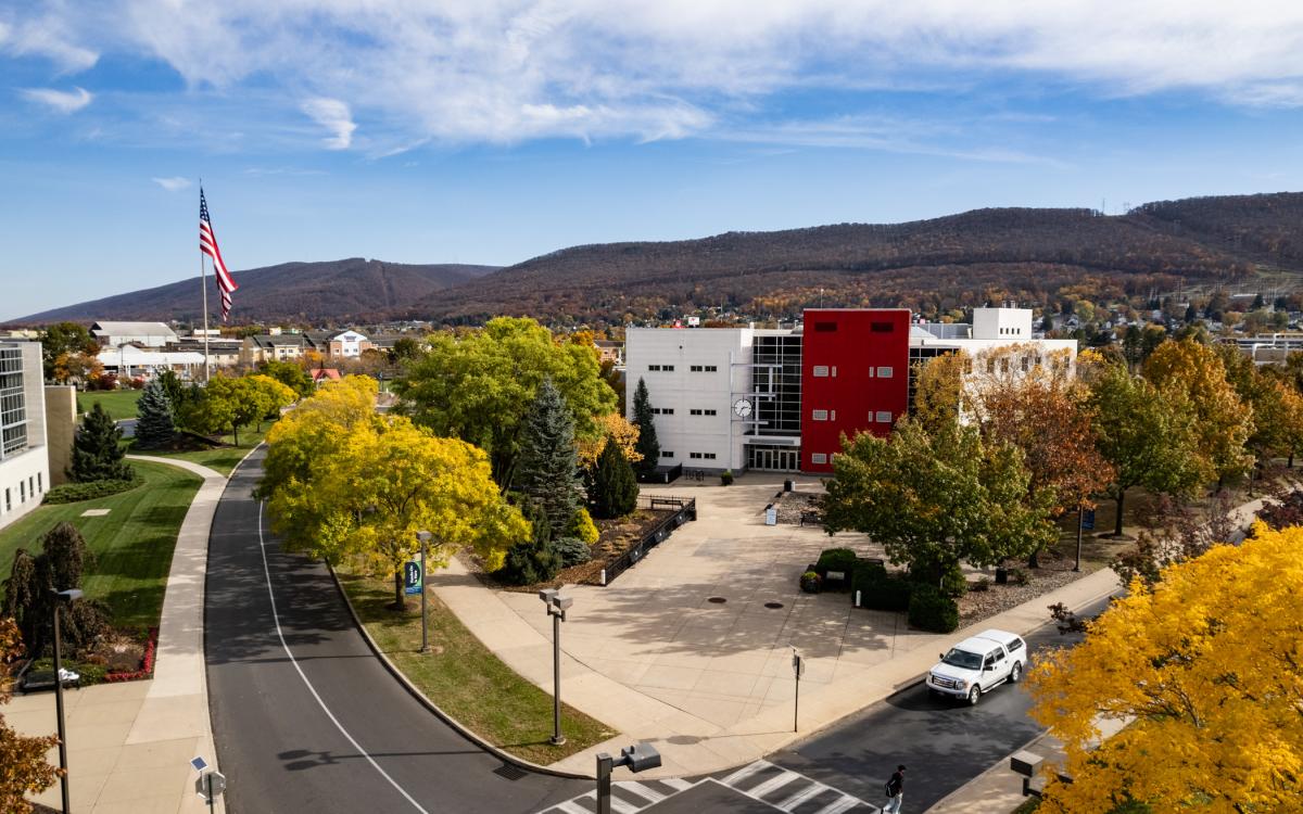 At the campus entrance, a stunning drone image by Rob Hinkal, social media specialist