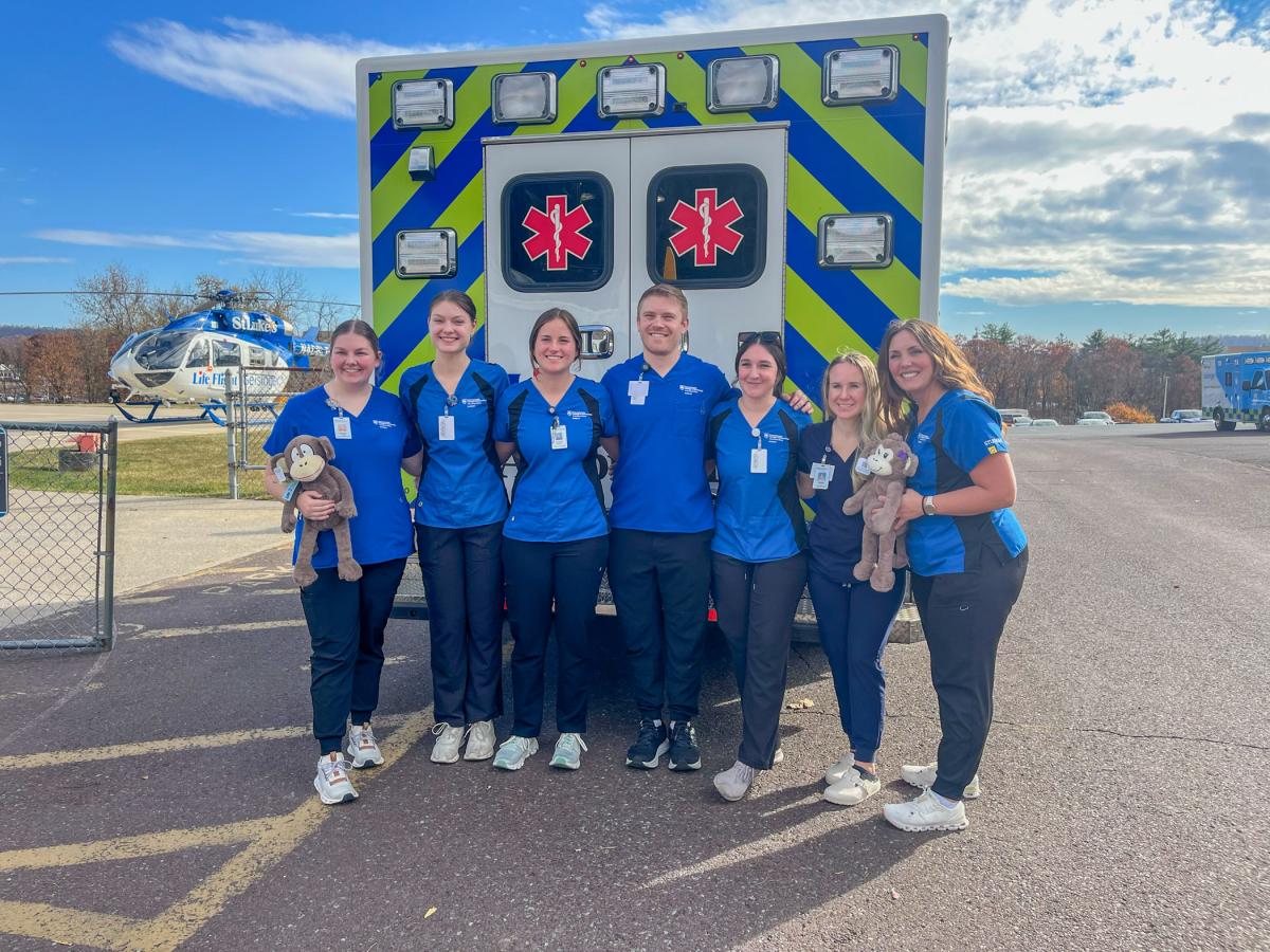 Students in a pediatric nursing class brought cuddly gifts to a clinical experience last week with a Geisinger Life Flight crew in Danville. Life Flight provides medical air transportation.