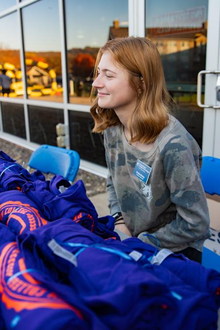 Everyone loves free T-shirts! Brooke L. Brinker, a construction management major from Bethlehem, also assists the effort.