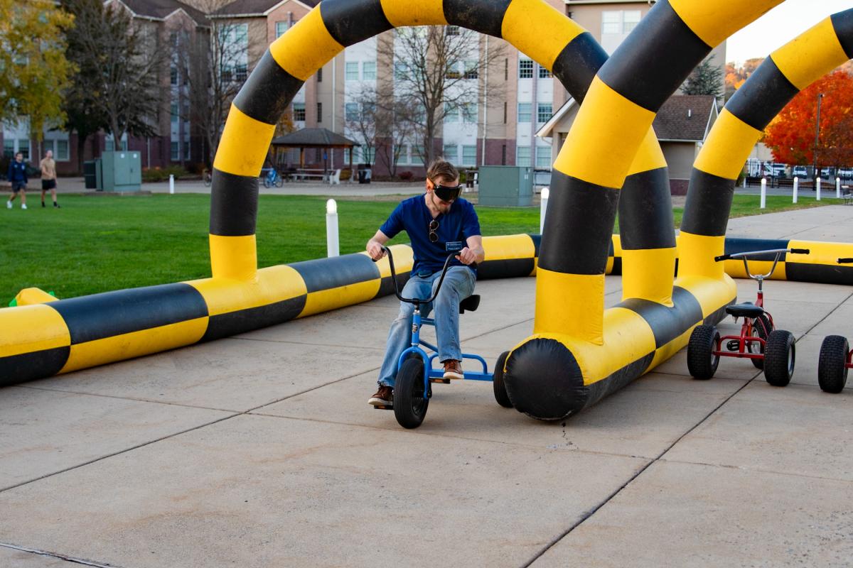 The race is on! The “Tipsy Turns” obstacle course (complete with large tricycles) attracts enthusiastic interest in Rose Street Commons. The event was organized by Residence Life, with the assistance of Penn College Police.