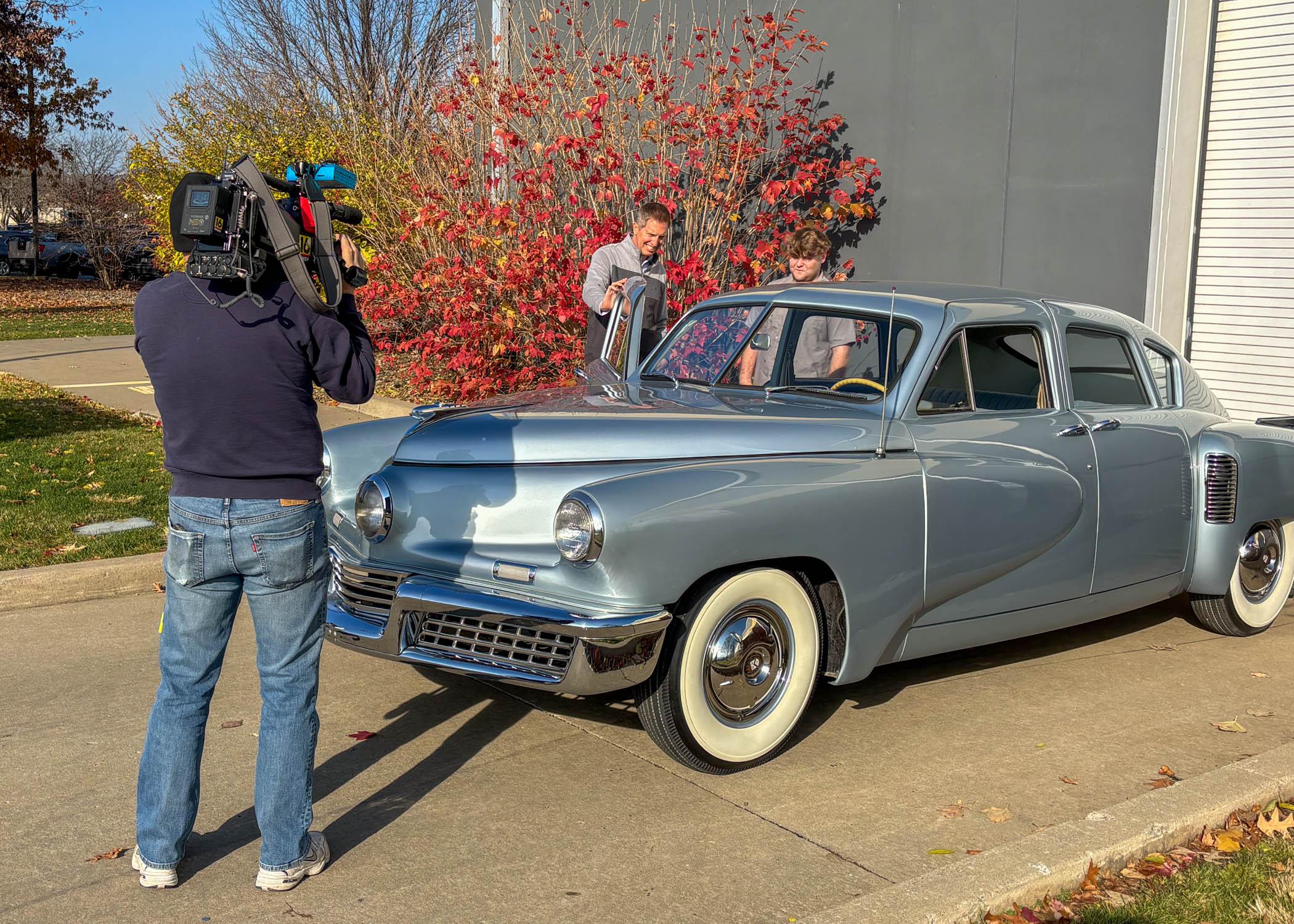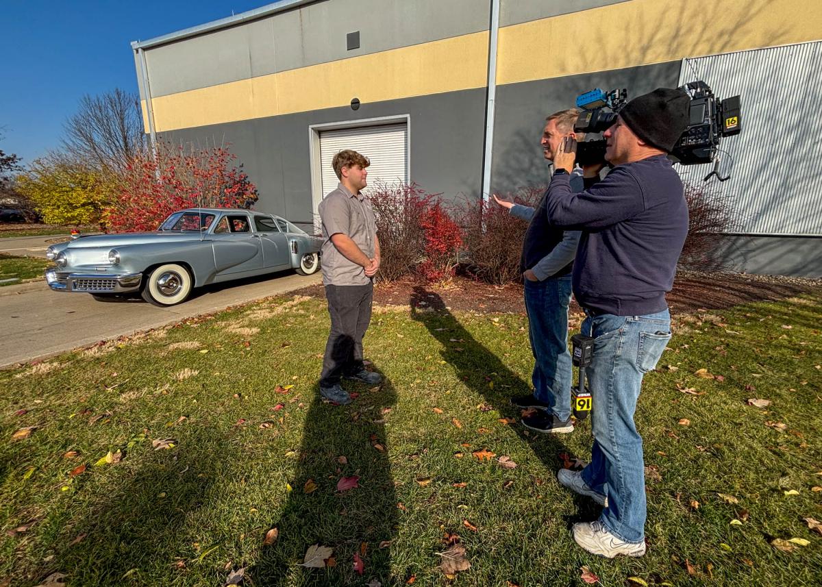 WNEP-TV’s Jon Meyer visited campus on Monday to produce an “On the Pennsylvania Road” segment regarding the 1948 Tucker restored by Pennsylvania College of Technology students. One of those students is Ty M. Tucker, of Columbia, the great-great grandson of Preston Tucker, the legendary automotive figure responsible for the car.