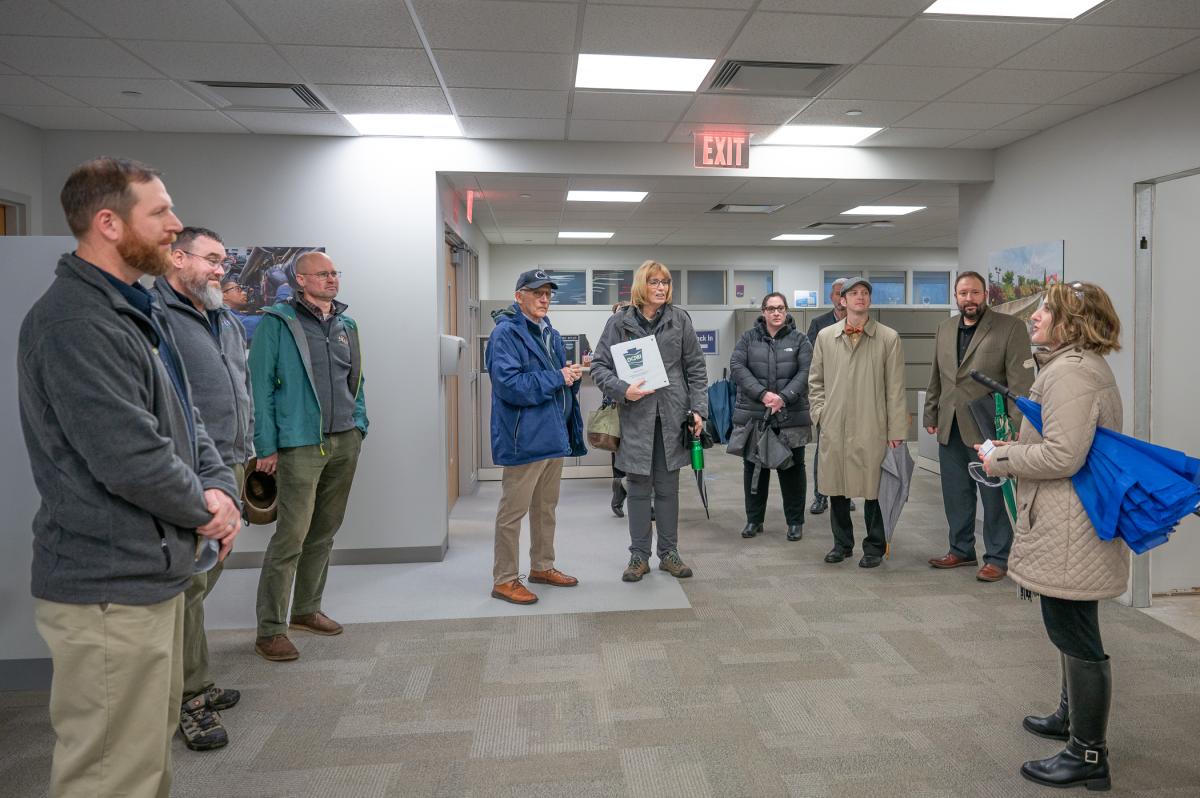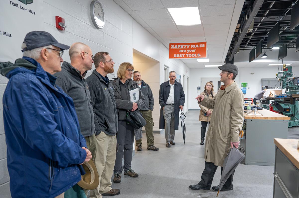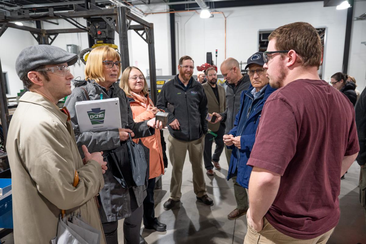 Following a press conference celebrating a $649,900 grant to Lycoming County that will support Phase 1 of the development of the Susquehanna River Walk Extension, state Department of Conservation and Natural Resources Secretary Cindy Adams Dunn and a number of her colleagues visited Penn College for a glimpse into campus facilities and the innovative spirit of the college’s community of creators.